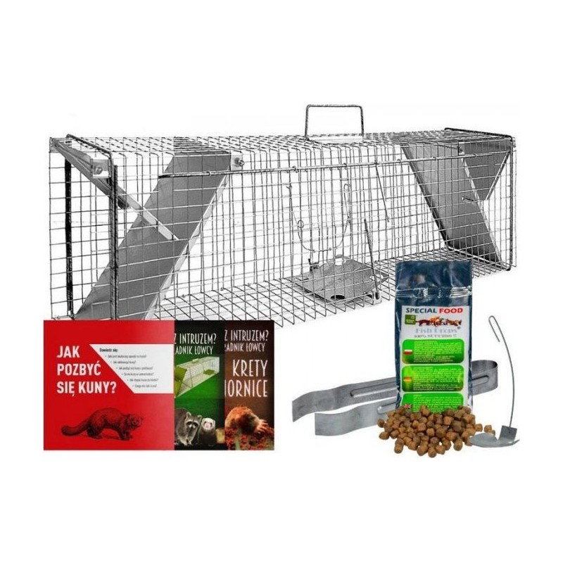 Technische Daten:Länge: 102 cmBreite: 20 cmHöhe: 27 cmMaschenweite: 23 x 23 mmMaterial: verzinkter StahlIm Lieferumfang enthalten:- Anleitung zum Einfangen von Tieren- Aufhänger für Köder- Metallzange- 150 ml stark duftendes Lockmittel in Form von Drops- Falle aus hochwertigem verzinktem StahlDie Marderkäfig ist eine bewährte und zugleich humane Methode, um Marder loszuwerden. Die Lebendfalle fängt jeden Marder zuverlässig ein, den Sie anschließend weit weg von Ihrem Haus freilassen können. Die Marderknopf-Falle besteht aus verzinktem Stahl, der dank seiner erhöhten Korrosionsbeständigkeit und der dicken Drähte widerstandsfähiger ist und länger hält. Die Marderknopf-Falle ist sehr einfach zu bedienen und zu reinigen. Ihr Funktionsmechanismus besteht aus einem einfachen Rastensystem, das ein sofortiges Einfangen des Raubtiers ermöglicht. Die präzise Passform der Falltellerelemente macht die Falle sehr empfindlich. Sobald die Marder die Auslöseplatte betätigen, schnappt der Mechanismus den Käfig sofort zu. Die bei der Herstellung der Falle verwendete Verzinkung ermöglicht es, die Elemente der Falle nicht mit Farbe zu beschichten. Dadurch verklemmt sich der Käfig nicht und hinterlässt keinen Fremdgeruch, der das Tier verscheuchen könnte. Die Größe der Marderknopf-Falle ist so gewählt, dass das Tier nach dem Fang viel Platz und ungehinderten Zugang zu Luft hat. Um den Transport zu erleichtern, befindet sich oben am Käfig ein Metallgriff, der gleichzeitig die Hände vor möglichen Kratzern schützt.**...