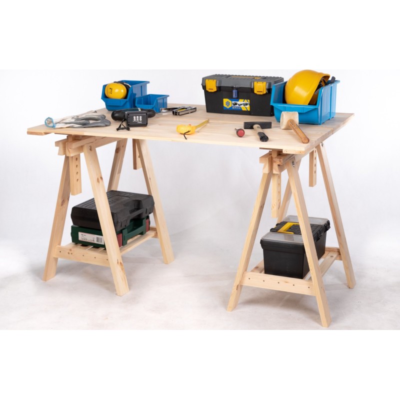 Im Angebot enthalten ist ein verstellbarer Holz-Bock ohne Tischplatte.