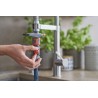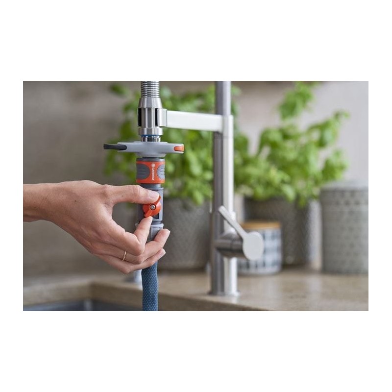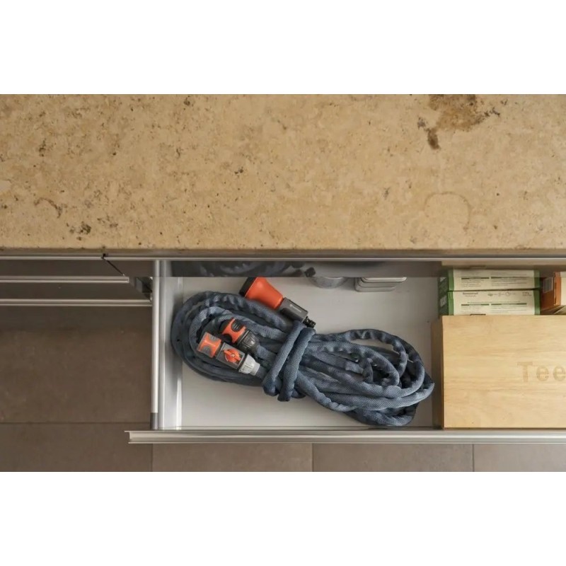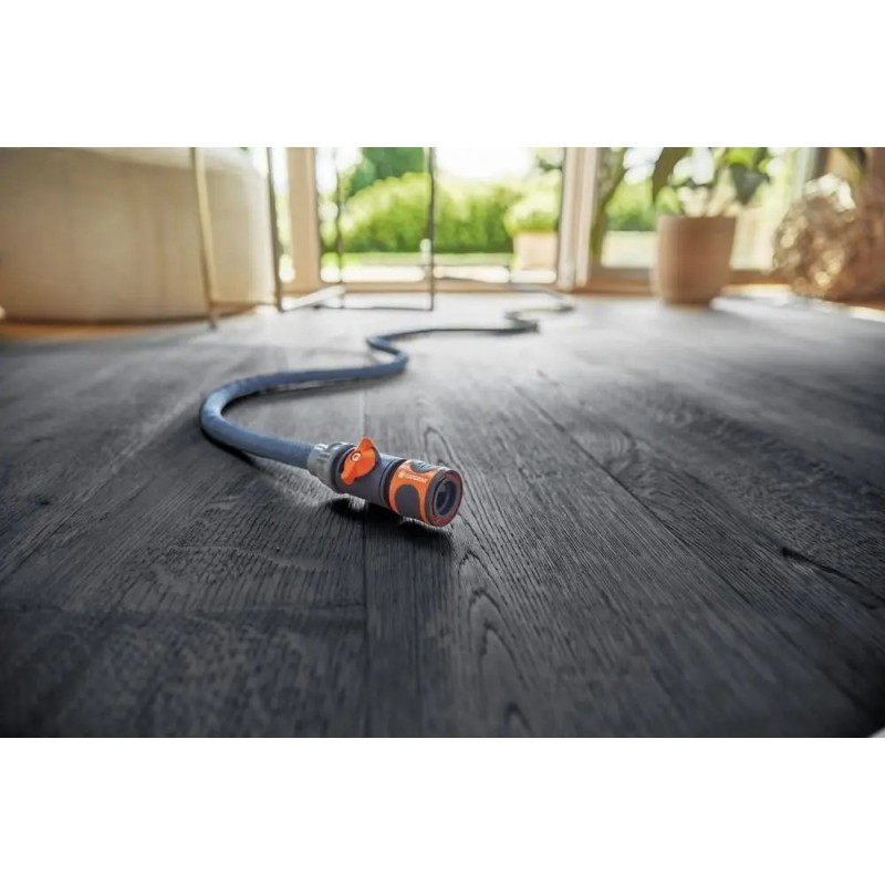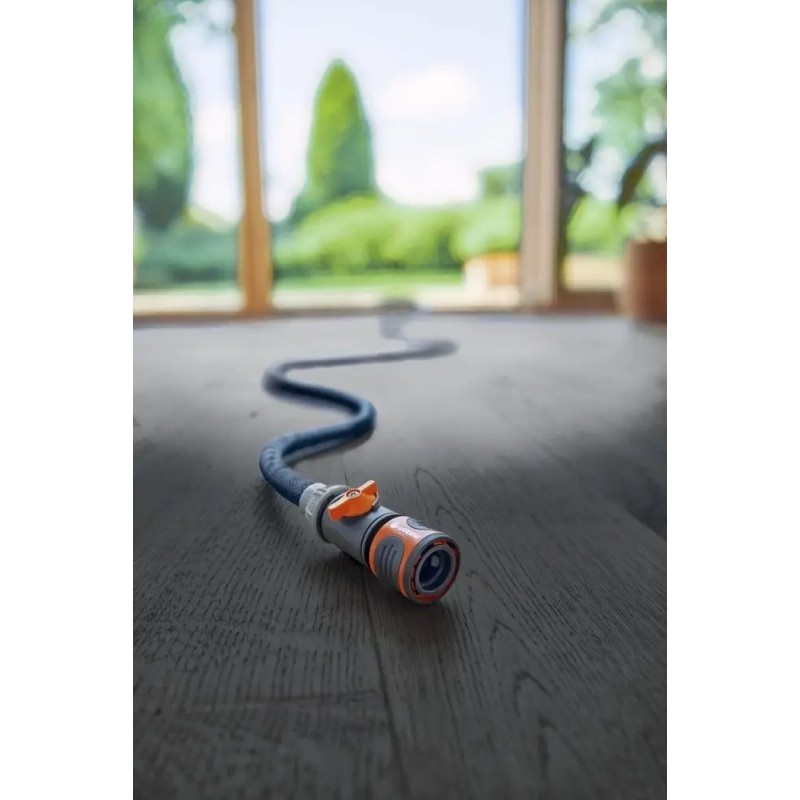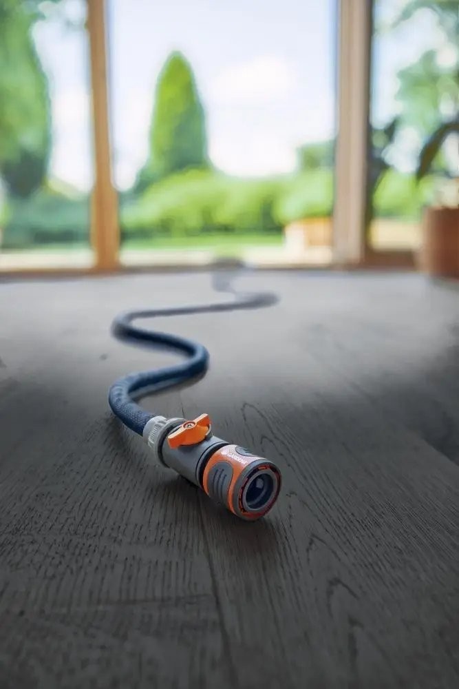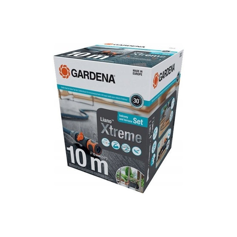 Das Set enthält einen 10 m langen Schlauch mit einem Durchmesser von 13 mm (1/2"), eine Spritzpistole, einen Liano™-Adapter für Innenwasserhähne mit Regelventil, eine Liano™-Schnellkupplung aus Metall sowie einen Anschluss für Innenwasserhähne. Der Liano™ Xtreme Textilschlauch lässt sich in wenigen einfachen Schritten an einen Innenwasserhahn anschließen, um Wasser sicher aus der Küche oder dem Bad nach draußen zu leiten. Alle Teile passen perfekt zusammen, und die Verbindung ist dank des Regelventils und der Schnellkupplung mit Dichtung dicht. So können Sie Ihre Pflanzen auf dem Balkon und der Terrasse bequem gießen. Nach dem Gießen schließen Sie einfach das Ventil und trennen den Schlauch vom Wasserhahn. Dank des Regelventils können Sie das im Schlauch verbleibende Wasser zum Gießen einer Pflanze in einem nahegelegenen Blumentopf nutzen. Das Ziehen des Schlauchs durch die Räume ist aufgrund seines geringen Gewichts einfach – der Liano™ Xtreme-Schlauch wiegt nur halb so viel wie herkömmliche PVC-Schläuche. Die flexible Struktur des Schlauchs erleichtert das Manövrieren im Haus und schützt vor Beschädigungen an Möbeln. Darüber hinaus lässt sich der Schlauch dank seiner Flexibilität leicht verstauen, da er sich perfekt an den verfügbaren Platz anpasst. Der Schlauch ist druckbeständig bis 35 bar. Liano™ Xtreme ist zudem UV- und frostbeständig, sodass er das ganze Jahr über im Freien verbleiben kann. Liano™-Textilschläuche sind frei von Schadstoffen wie Phthalaten (<0,1 %) sowie Cadmium, Blei und Barium (<0,1 %). Sie wurden entwickelt, um den größten Herausforderungen gerecht zu werden, und sind für den täglichen Gebrauch bestimmt. GARDENA-Textilschläuche dienen nicht nur dazu, Wasser vom Wasserhahn zu Pflanzen und Rasen zu befördern, sondern sind auch Teil mobiler Bewässerungslösungen, bei denen alle Komponenten miteinander kompatibel sind. Die in Europa hergestellten GARDENA-Schläuche sind ein Garant für Qualität, Zuverlässigkeit und Langlebigkeit.