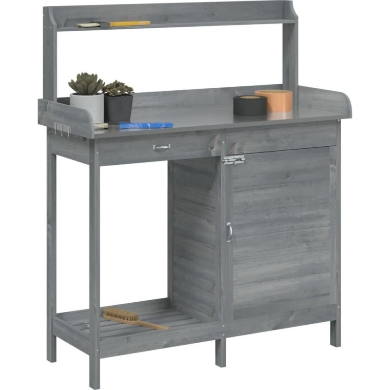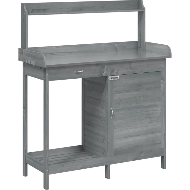 vidaXL Pflanztisch mit Schrank, grau, 110,5 x 45 x 124,5 cm