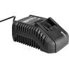 Das Ladegerät für Energy+-Akkus 58G002 GRAPHITE ist ein Gerät, mit dem Akkus der Energy+-Serie ohne Kapazitätsverlust aufgeladen werden können. Das Ladegerät ist für einen maximalen Stromfluss von 2,3 A ausgelegt. Es ist für Lithium-Ionen-Akkus mit einer Spannung von 18 V vorgesehen. Die Ladespannung beträgt 22 V, die Netzspannung 230 V~50 Hz. Der Ladefortschritt wird durch eine praktische LED angezeigt, die über den Anschluss des Geräts an das Stromnetz, den Ladevorgang und das Ende des Ladevorgangs informiert.