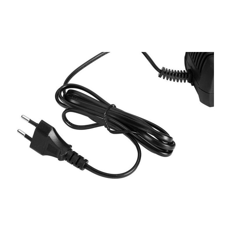 Das Ladegerät ist mit einem Spannungs- und Temperaturkontrollsystem ausgestattet, das eine Überhitzung des Geräts verhindert. Zusätzlich verfügt es über ein flexibles und robustes Netzkabel mit einer Länge von 2 m.