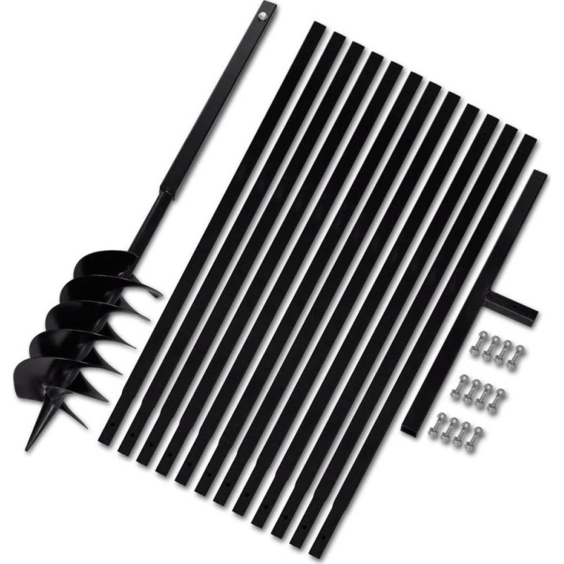 Material: Stahl Farbe: schwarz Erdbohrer: Gesamtlänge: 1 m Länge des Griffs: 0,6 m Durchmesser des Rundrohrs: 25 mm Abmessungen des Vierkantrohrs: 30 x 30 mm Spiraldurchmesser: 150 mmAbstand der Spirale: 50 mm Länge der Spirale: 250 mm Drei Spiralen Verlängerungsrohr: Länge (1 Rohr): 1 m Abmessungen des Vierkantrohrs: 30 x 30 mm Im Lieferumfang enthalten sind ein Erdbohrer, ein Griff, 12 Verlängerungsrohre und einige Schrauben.