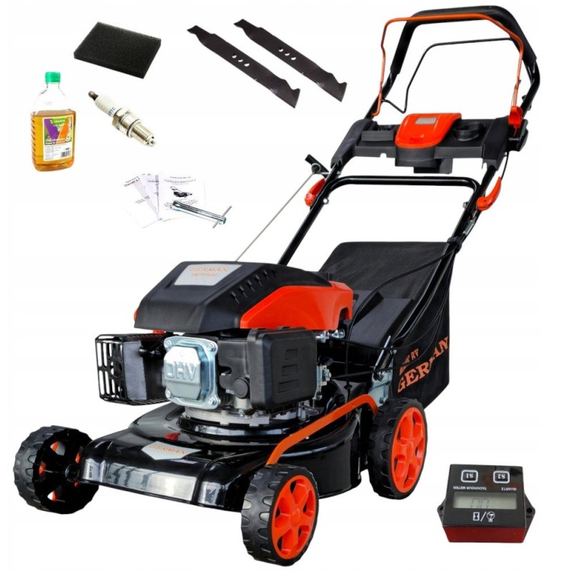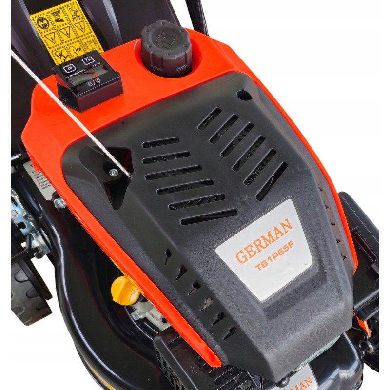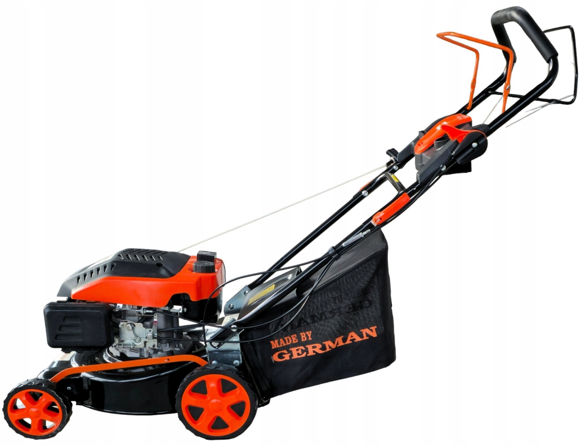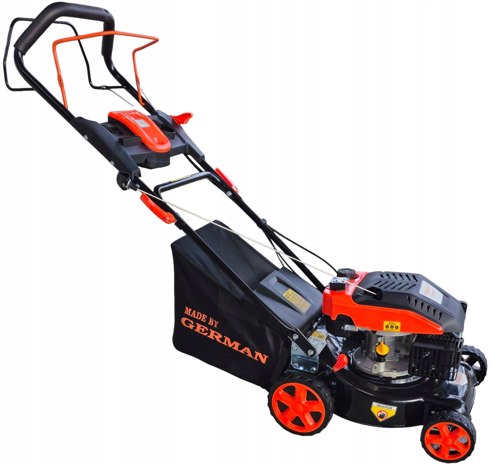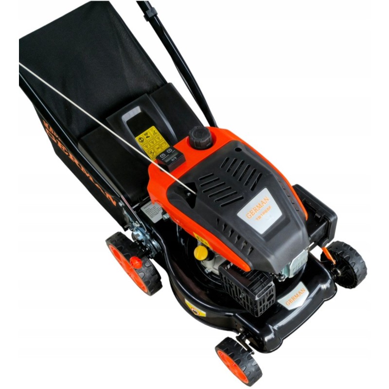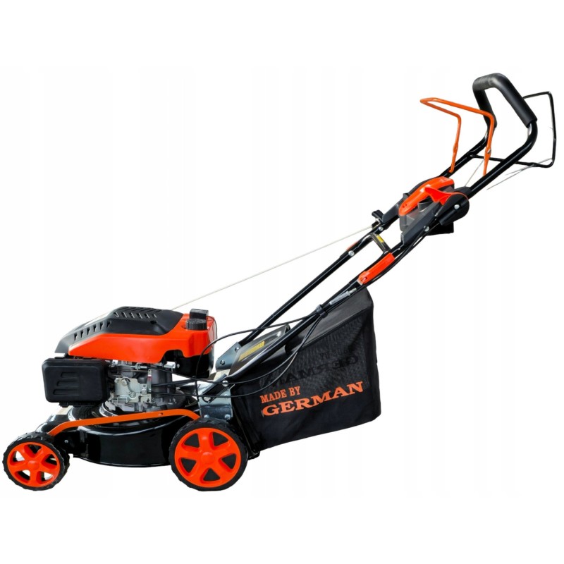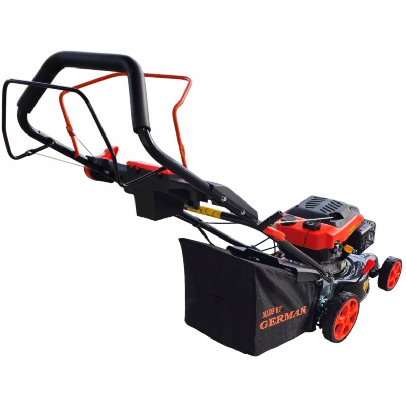Ausgestattet mit einem GERMAN OHV-Motor bietet der Rasenmäher nicht nur hohe Leistung, sondern auch zuverlässigen Betrieb. Dank eines Hubraums von 173 cm³ bewältigt das Gerät verschiedene Grasarten mühelos und garantiert ein gleichmäßiges und effizientes Mähen.