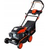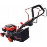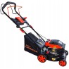 Der ergonomische Griff und die großen Hinterräder sorgen für eine bequeme und komfortable Bedienung des Rasenmähers. Dank der kugelgelagerten Räder wird die Arbeit mit dem Gerät effizienter, und Sie können sich auch auf unebenem Gelände über eine einfache Manövrierbarkeit freuen.