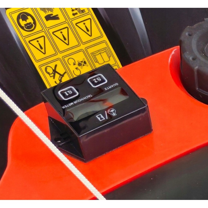 Der Rasenmäher ist mit einem Betriebsstundenzähler ausgestattet, der eine laufende Überwachung der Motorlaufzeit ermöglicht. Dies erleichtert die Planung der Wartung und die Pflege des Geräts, was sich in einer längeren Lebensdauer niederschlägt.