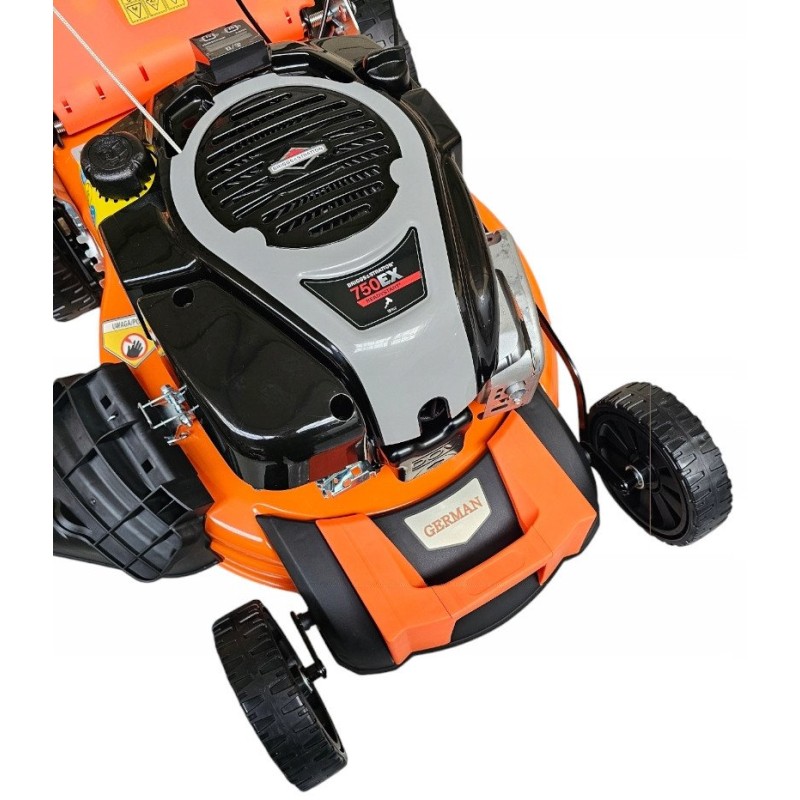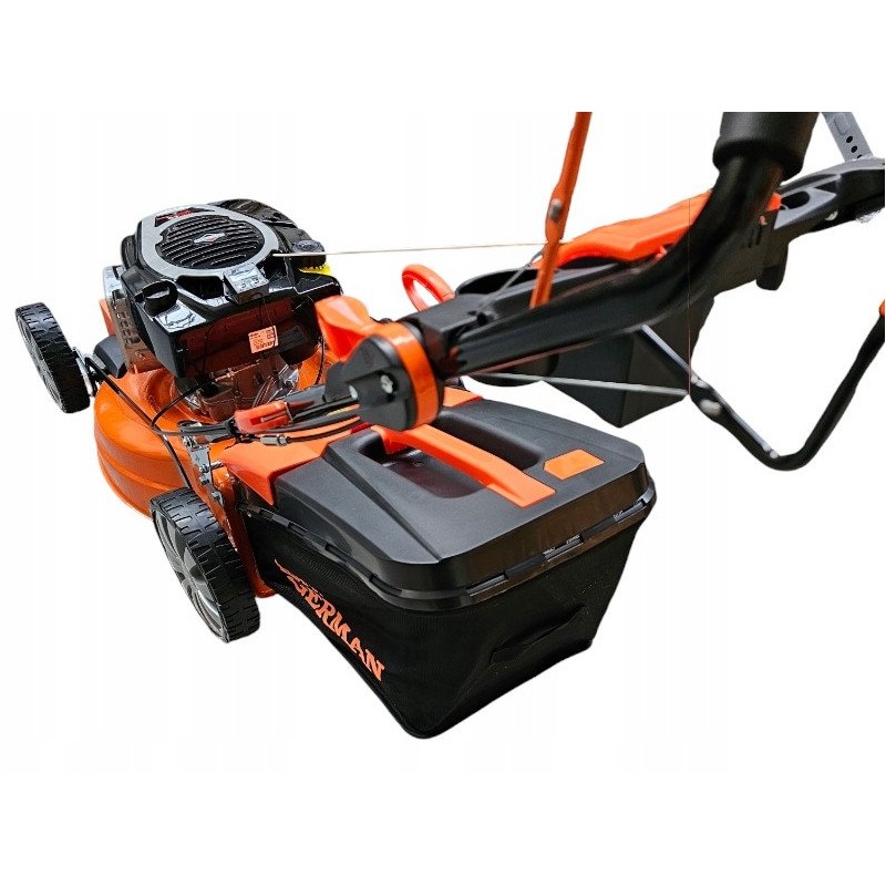 Der Benzinrasenmäher German zeichnet sich durch einen ergonomischen Griff und Radantrieb aus, was den Bedienkomfort erheblich erhöht. Darüber hinaus erleichtern die klappbaren Fahrgriffe den Transport und die Lagerung des Geräts.