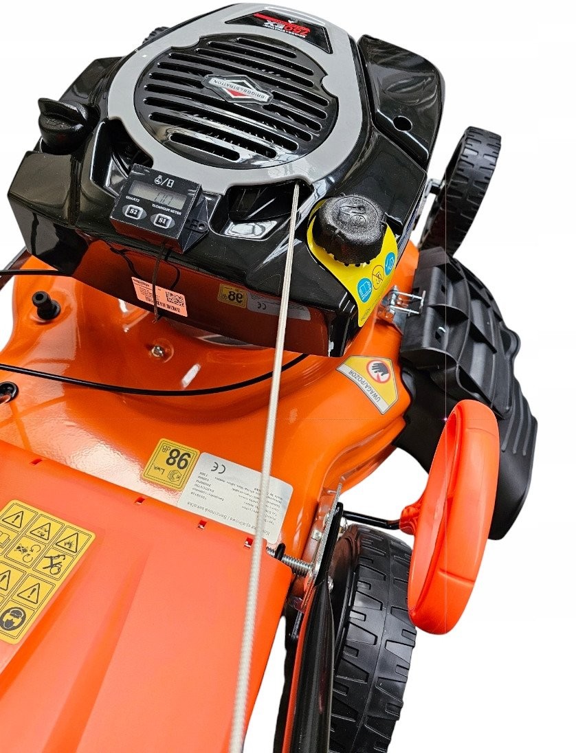 Der Rasenmäher ist mit einem 65-Liter-Grasfangkorb ausgestattet, der eine effektive Grasaufnahme ermöglicht und das häufige Entleeren minimiert. Dies ist die ideale Lösung für alle, die Komfort und Effizienz bei der Gartenarbeit schätzen.