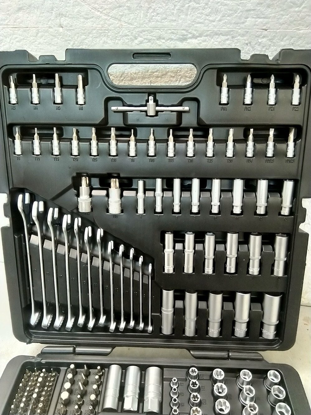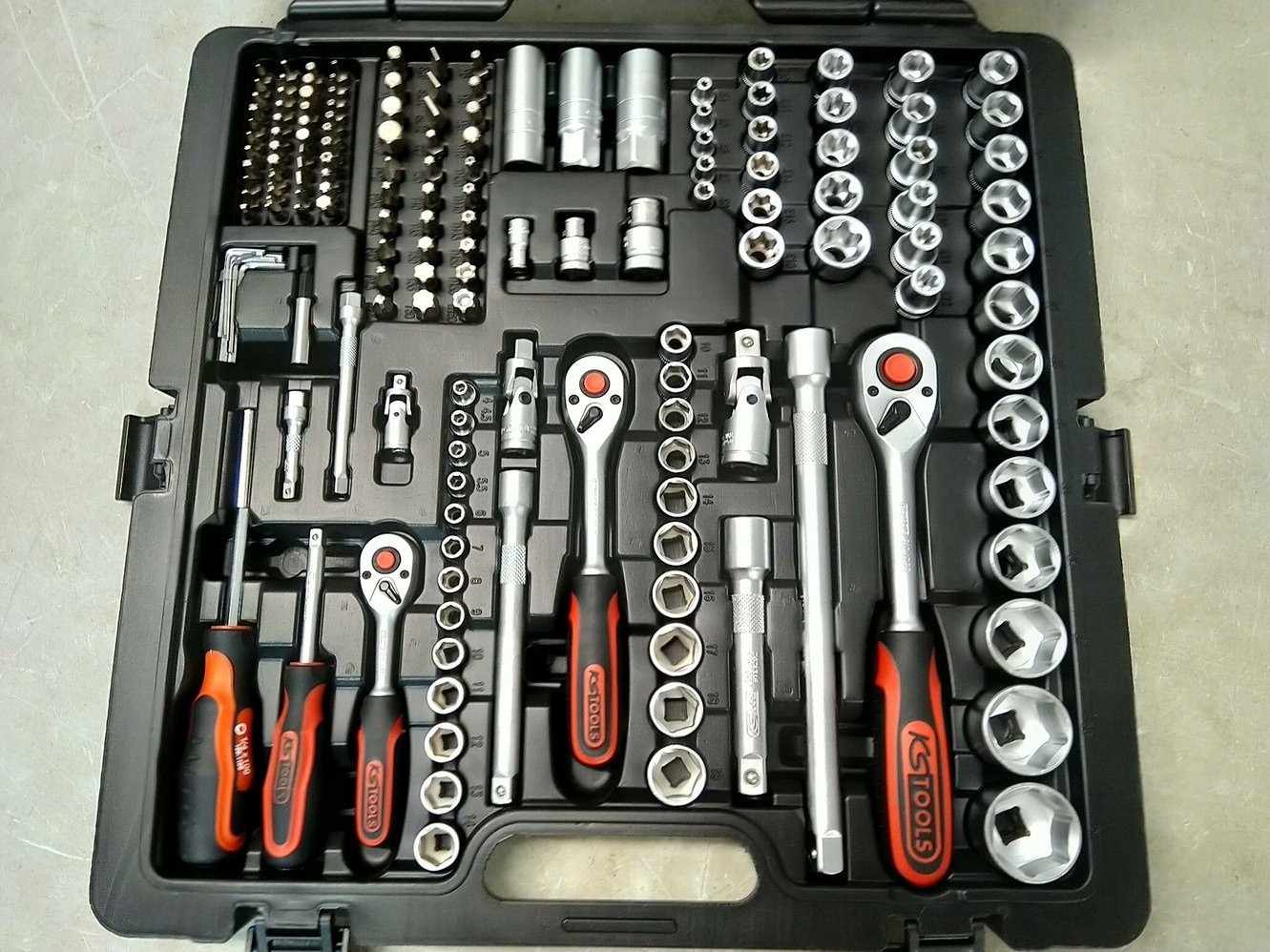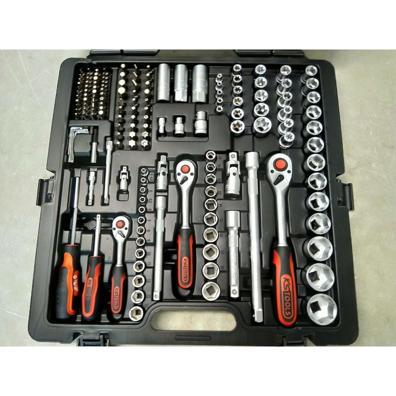• Set mit 216 Steckschlüsseleinsätzen in den Größen 1/4", 3/8" und 1/2".
