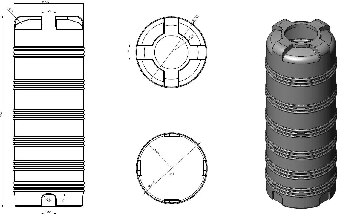 Das vertikale Kunststofffass V-750 ist ein robuster Lebensmittelbehälter mit einem Fassungsvermögen von 750 Litern, einer Höhe von 199 cm und einem Durchmesser von 74,4 cm. Praktisch zum Transport nach Hause und zum Sammeln von Regenwasser. Die Stabilität des Behälters wird durch 15 Ringverstärkungen gewährleistet. Am Boden befindet sich eine Gewindebohrung von 1 3/4 Zoll.