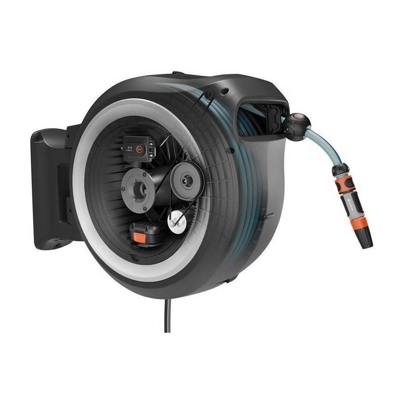 Gardena Akku-Wandschlauchbox PowerRoll XL 35 m. Im Lieferumfang enthalten: Ladegerät und Akku