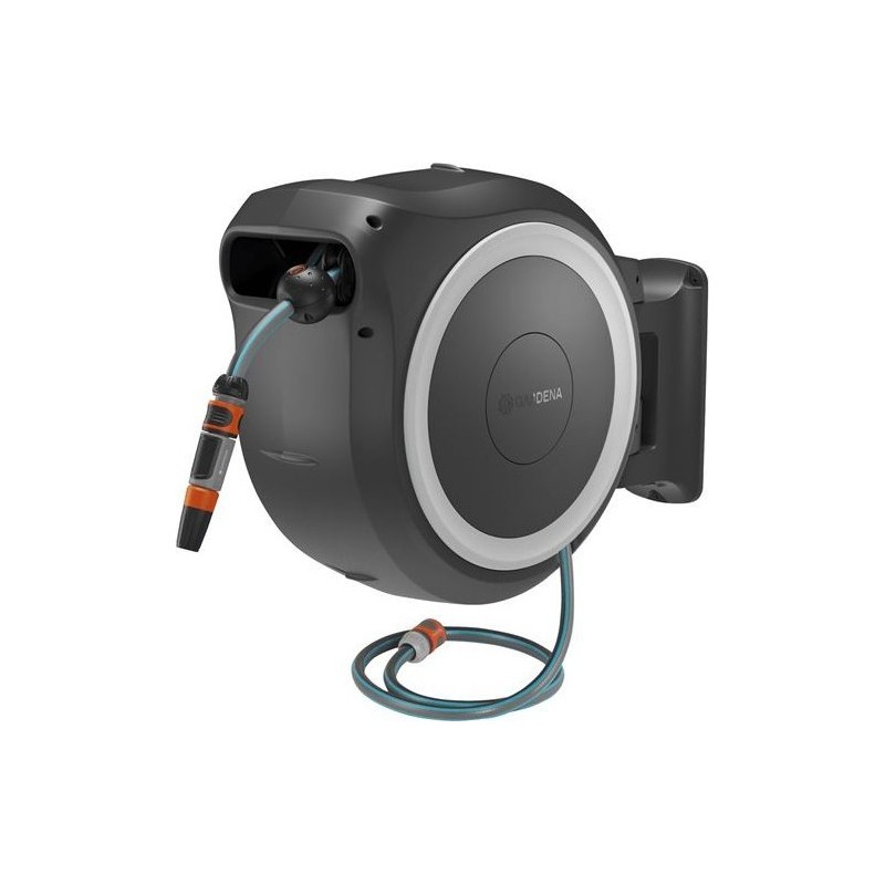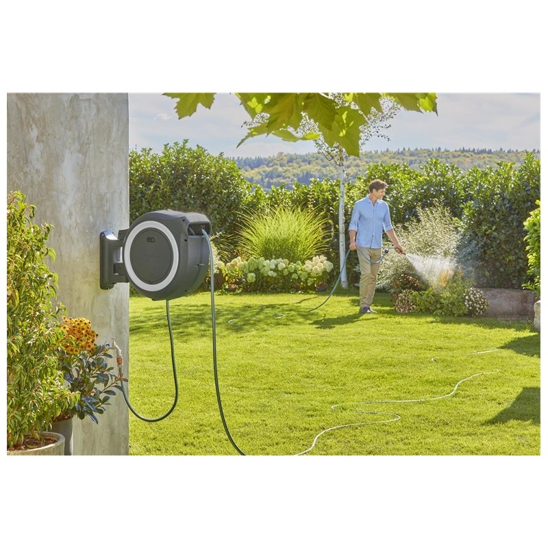 Gardena GARDENA Akku-Wandschlauchbox PowerRoll XL 18 V P4A, 35 Meter, Schlauchaufroller (grau/weiß, Li-Ionen-Akku 2,5 Ah, POWE