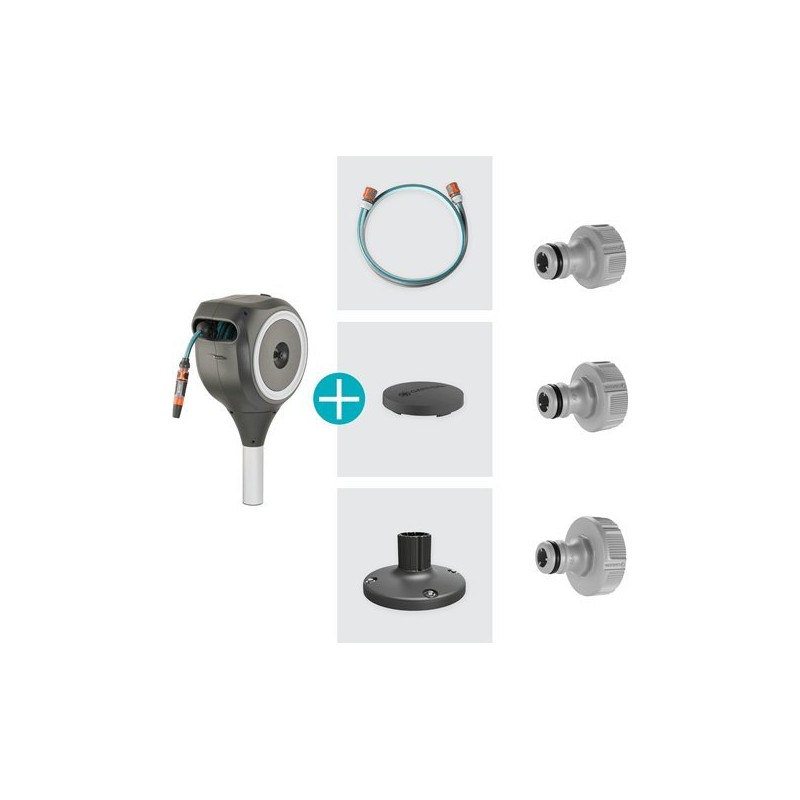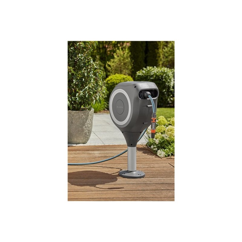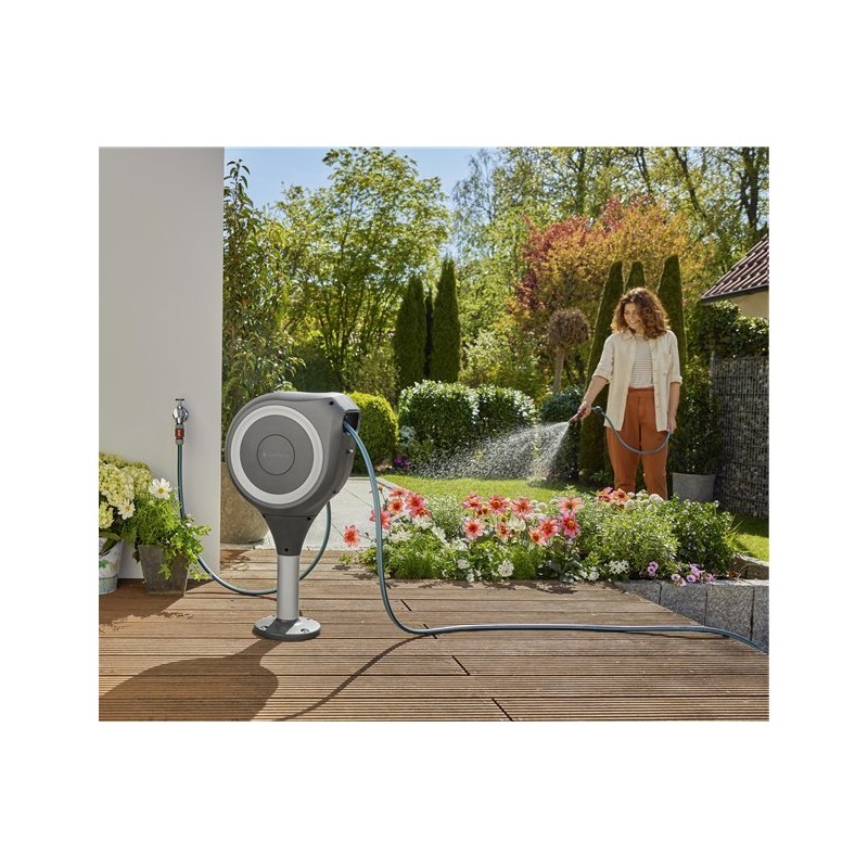 Gardena GARDENA RollUp M Terrassenschlauchbox, 20 Meter, Schlauchaufroller (grau/weiß, inkl. Reinigungsspritze)