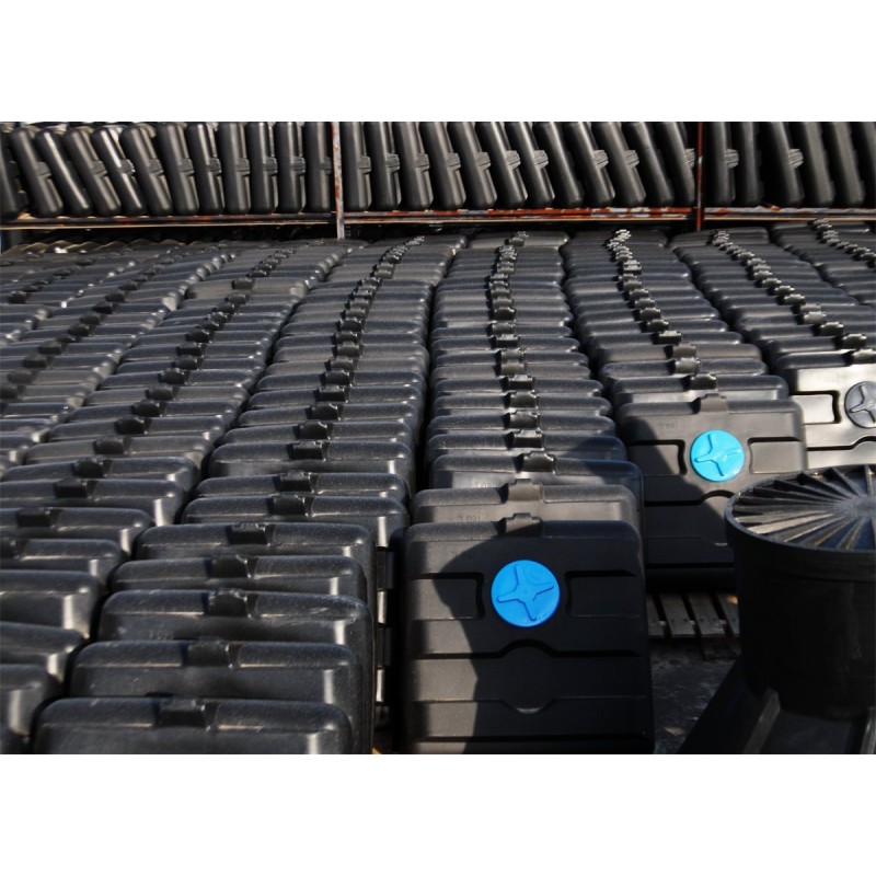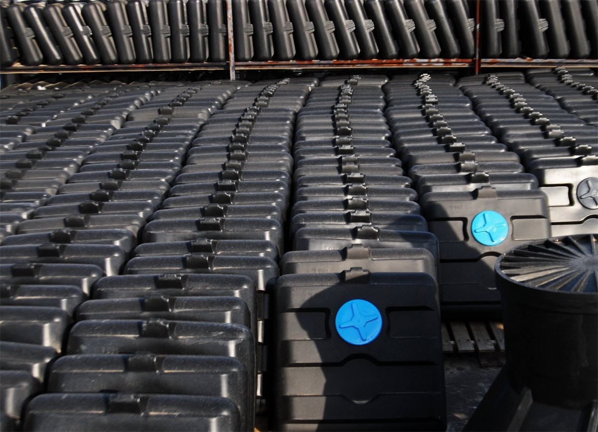 Der Behälter besteht aus rotationsgeformtem Polyethylen.