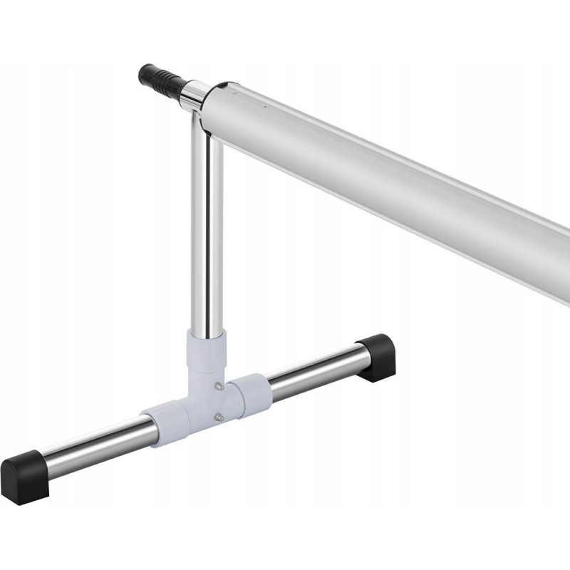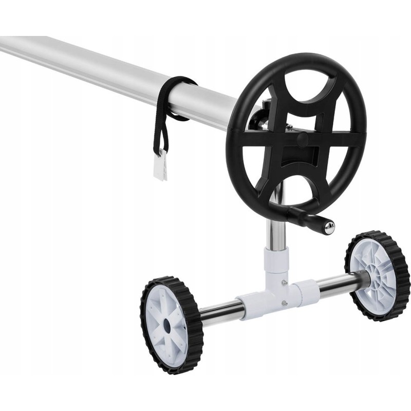Die Vielseitigkeit der Aufrollvorrichtung zeigt sich in ihrer Anpassungsfähigkeit an verschiedene Schwimmbecken. Die einstellbare Breite ermöglicht den Einsatz des Geräts in Becken mit Abmessungen von 4,2 bis 5,2 m. Außerdem passt sie zu allen gängigen Arten von Solarfolien. Der T-förmige Sockel an einem Ende und die großen Räder am anderen Ende sorgen für Stabilität und Mobilität.