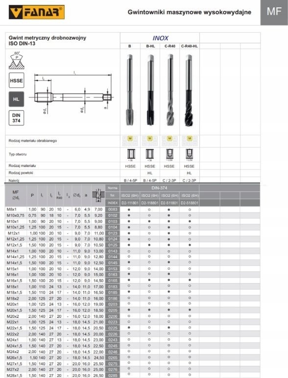 Kategorie Gewindebohrer Marke Fanar EAN13 5900920090523