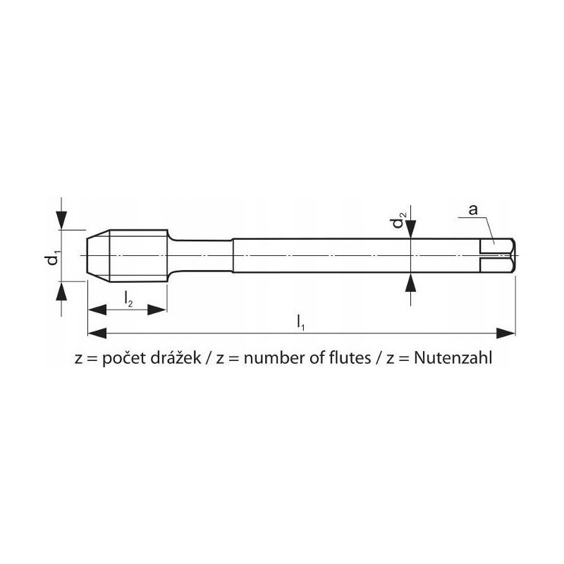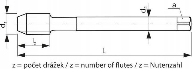 Keine Kühlung, Toleranz des Teilungsdurchmessers, Art der Spanrillen – schräge Spanflächen: d1 – 13,157, P – 1,337, 1"/P – 19, l1 – 100, l2 – 22, l3 – d2 – 11,0, a – 9,0, Durchmesser der Gewindebohrung – 11,80
