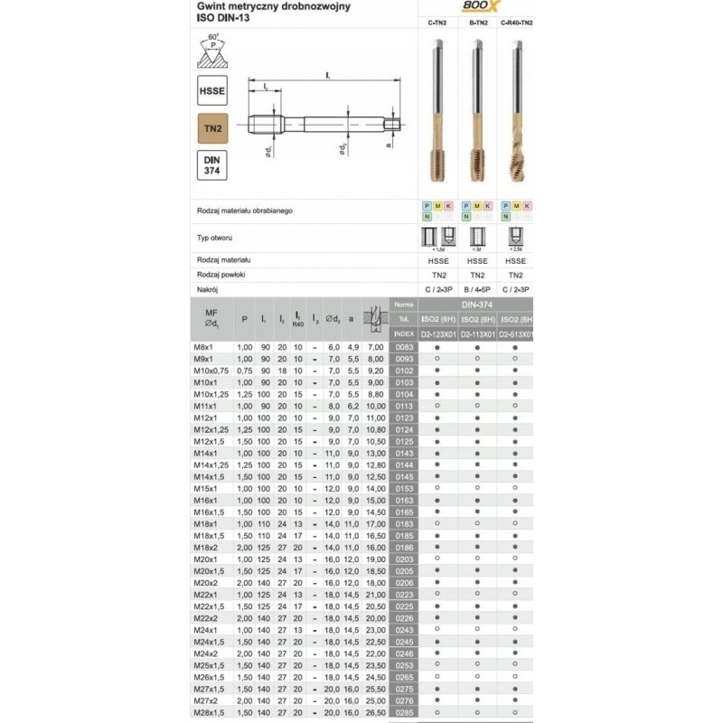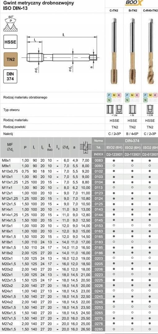 Fanar Gewindebohrer M16x1,5 DIN-374B (6H) HSSE TIN 800x