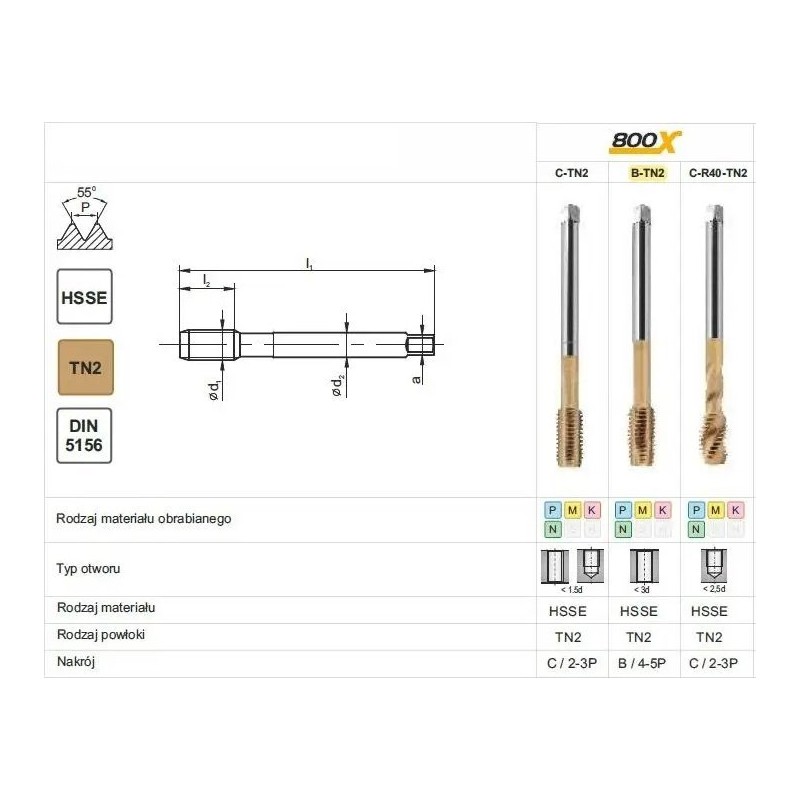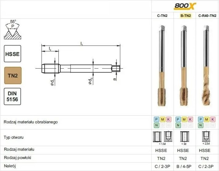 Fanar Gewindebohrer G 1/2" DIN-5156B HSSE TIN 800X