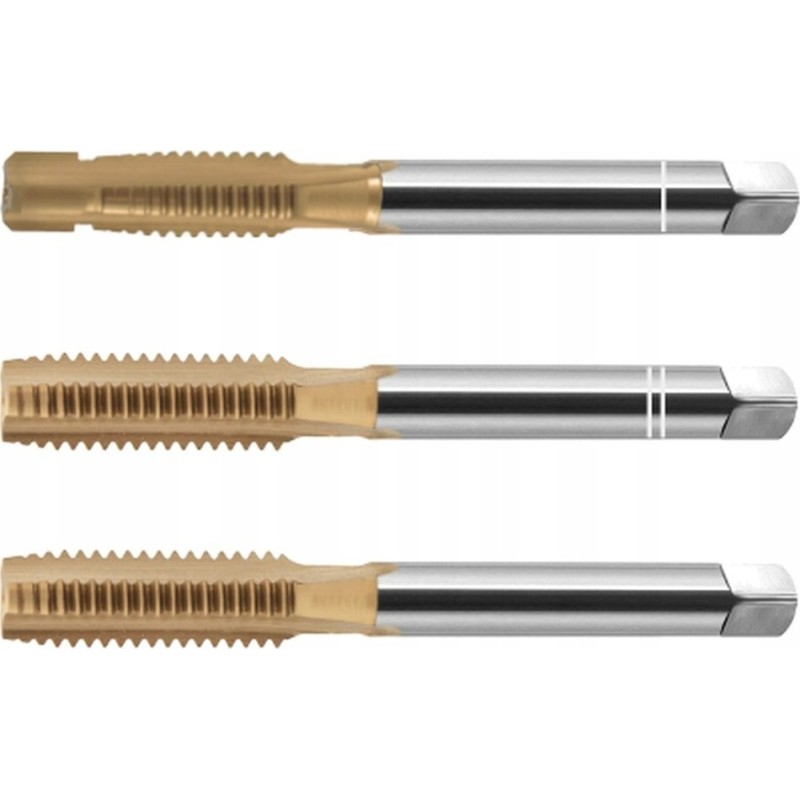 INOX-Handwerkzeuge sind in Sets mit 2 oder 3 Werkzeugen mit Zentrumsbohrung erhältlich. Sie bestehen aus hochlegiertem HSSE-Stahl, der für die Bearbeitung von Edelstahl geeignet ist. Die Variante mit TiN-Beschichtung zeichnet sich durch höchste Standzeit aus. Die Schneidlänge des Fertigbearbeitungswerkzeugs beträgt etwa das Dreifache der Gewindesteigung.