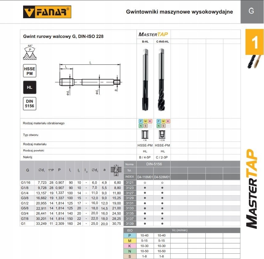 Fanar Gewindebohrer G 1/4" DIN-5156B HSSE-PM HL MASTERTAP