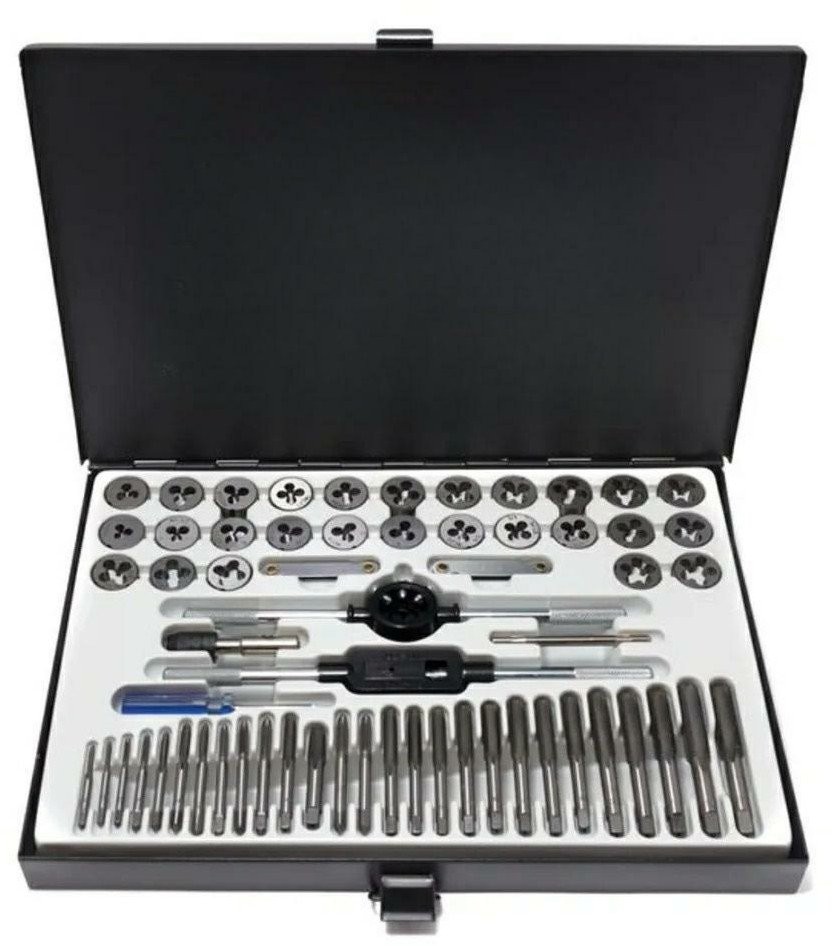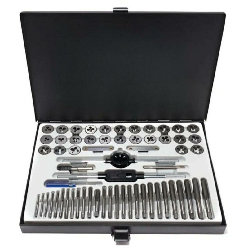: Gewindebohrer- und Gewindeschneidsätze zum schnellen und effizienten Schneiden und Wiederherstellen von Gewinden in Metallteilen. Größen: M3x0,5, 4x0,7, 5x0,8, 6x1, 7x1, 8x1,25, 9x1,25, 10x1/1,5, M12x1,75; 4-40, 6, 8-32, 10-36, 12-24;1/4, 5/16, 3/8, 7/16, 1/2, 1/8 Gewindeschneiderhalter 1 Schraubendreher 2 Gewindelehren 1 T-Griff Das Set enthält Gewindeschneider in verschiedenen Größen und Gewindeschneidbacken, die zum Schneiden von Gewinden dienen. Gewindebohrer und Schneideisen haben unterschiedliche Gewindeprofile, die verschiedenen Gewindegrößen und -typen entsprechen. Das Set aus Gewindeschneidern und Gewindeschneidbacken kann zum Schneiden von Außengewinden an Metallteilen sowie von Innengewinden in Bohrungen verwendet werden. Es kann bei der Reparatur und Herstellung verschiedener Metallprodukte wie Schrauben, Muttern, Bolzen usw. nützlich sein. Lieferung in einem Metallkoffer zur bequemen Aufbewahrung und zum Transport.