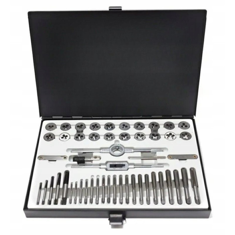 Die im Set enthaltenen Werkzeuge zeichnen sich durch eine hohe Verarbeitungsqualität aus, was eine lange Lebensdauer und Zuverlässigkeit gewährleistet. Gewindebohrer und Muttern wurden für eine präzise Passform entwickelt, was ein einfaches und effektives Gewindeschneiden ermöglicht.