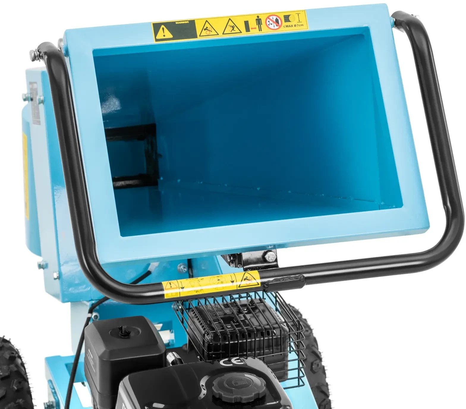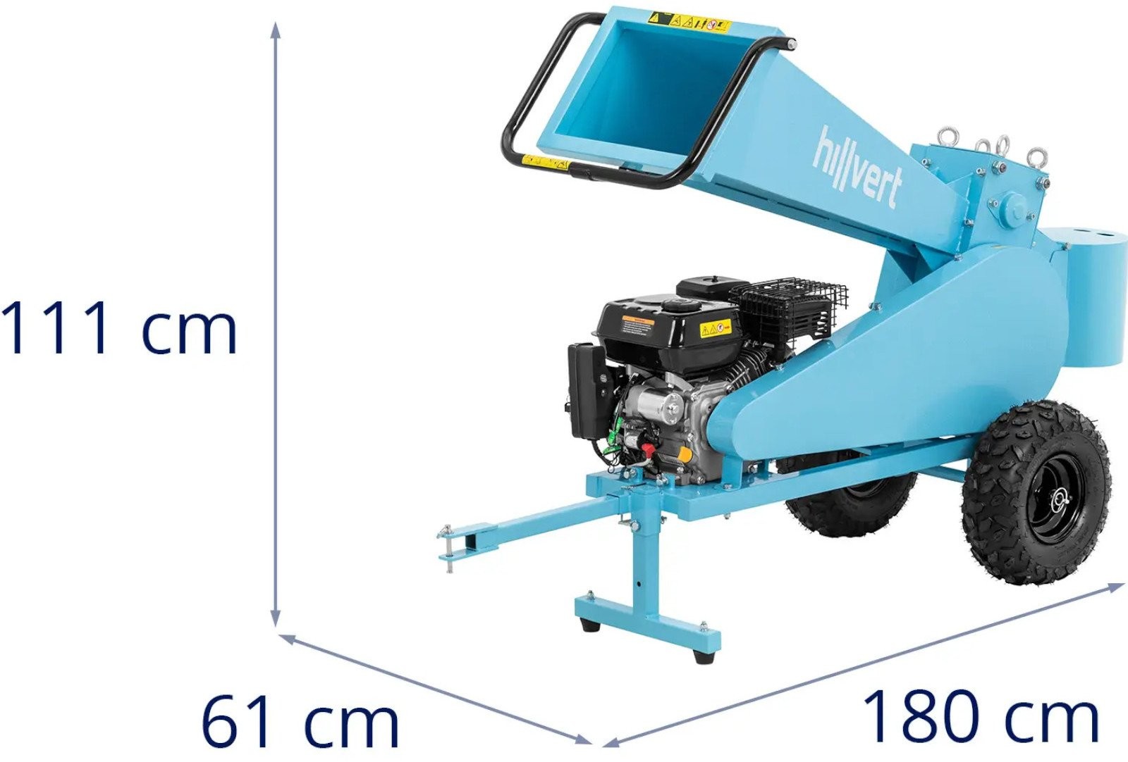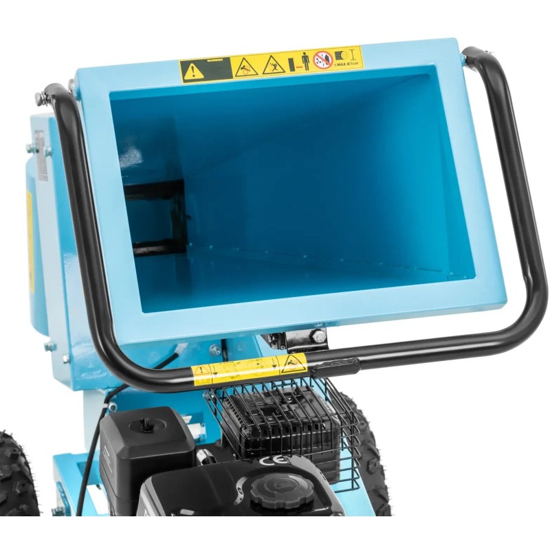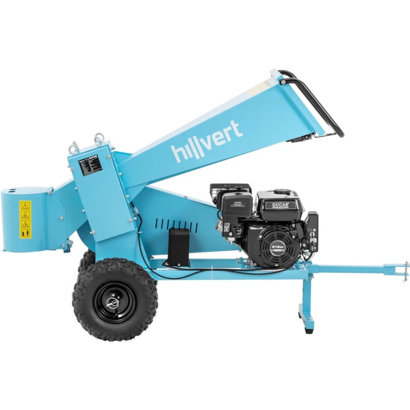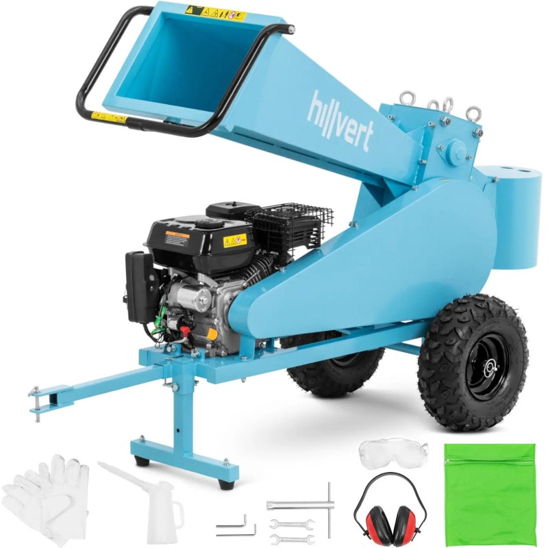 Der benzinbetriebene Häcksler der Marke Hillvert ermöglicht die Verarbeitung von abgeschnittenen Ästen im Garten oder auf dem Grundstück. Er zerkleinert sie in Stücke mit einer Länge von bis zu 22 cm . Das Gerät ist mit einem präzisen Schneidwerk mit vier Walzen und einem leistungsstarken 4-Takt-OVH-Motor mit 212 cm³ Hubraum ausgestattet. Der 3,6 -Liter-Kraftstofftank garantiert eine lange Betriebsdauer. Der Motor des Holzhäckslers hat eine Leistung von 7 PS , wodurch Äste mit einem Durchmesser von 7 cm sicher zerkleinert werden können. Die Äste werden über einen horizontalen Einfülltrichter in das Gerät eingeführt, der das Holz zum Schneidwerk befördert. Die entstandenen Stücke mit einer Länge von bis zu 20 cm lassen sich bequem lagern oder als Brennholz verwenden. Der Holzhäcksler lässt sich mithilfe einer Anhängerkupplung und zwei großen Gummirädern leicht direkt zum Einsatzort transportieren. Ein solider Sockel sorgt für einen sicheren und stabilen Betrieb der Maschine.