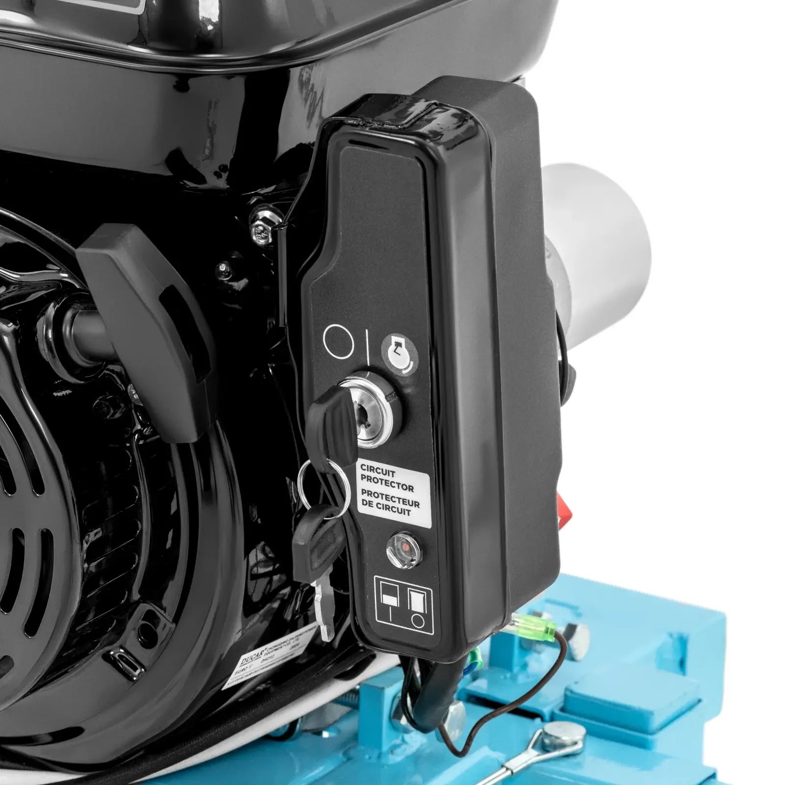 • - Benzinbetrieben, lässt sich bequem mit einer Anhängerkupplung zum Einsatzort transportieren.