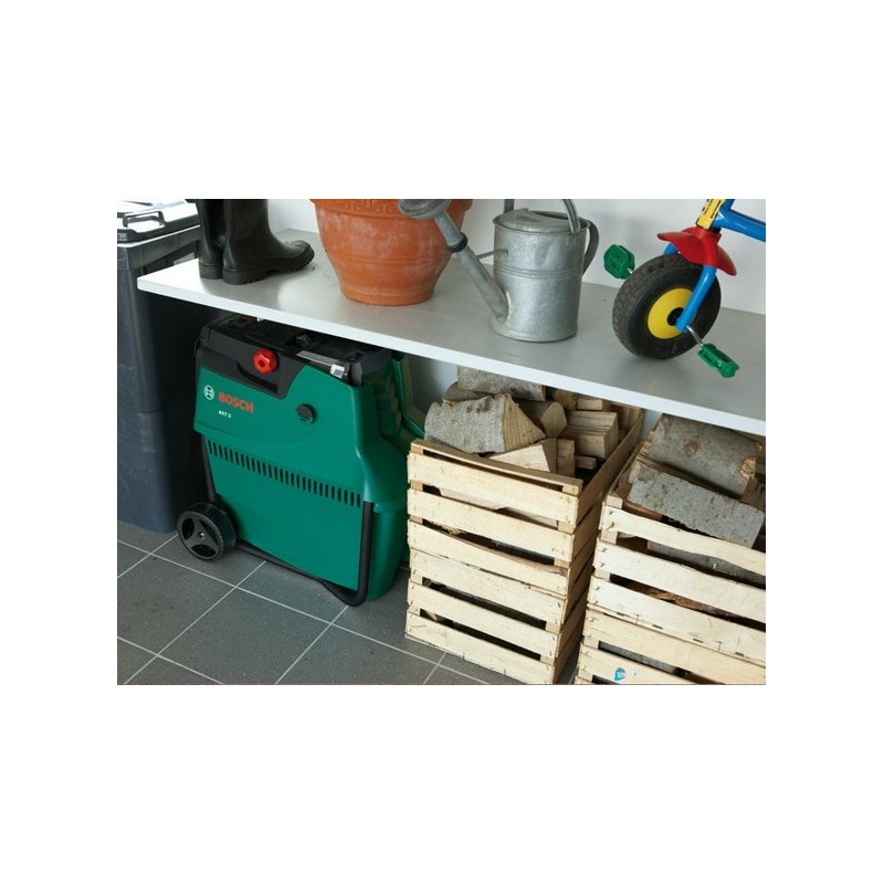 • Praktischer Auffangbehälter: Der 53-Liter-Behälter erleichtert das Auffangen des zerkleinerten Materials