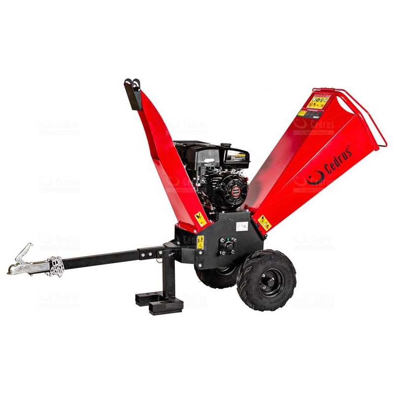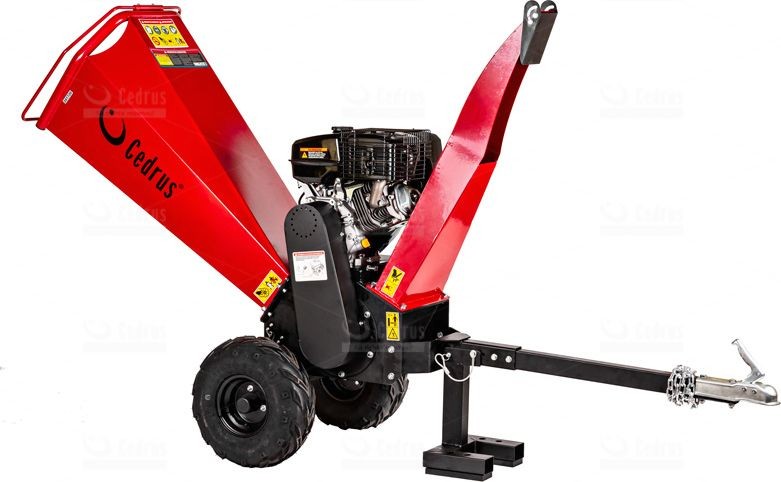 Der Benzin-Häcksler Cedrus RB03 ist eine leistungsstarke Maschine, die für die Verarbeitung von Ästen mit einem Durchmesser von bis zu 12 cm ausgelegt ist.Der Häcksler Cedrus RB03 ist eine Maschine zum Zerkleinern von Ästen mit einem Durchmesser von bis zu 120 mm. Er ist mit einem leistungsstarken Loncin-Motor mit 420 cm³ Hubraum, einer Zylinderlaufbuchse aus Gusseisen und einer Transistorzündung ausgestattet. Die robuste Konstruktion des Arbeitsaggregats, das aus einer Trommel mit zwei 300 mm langen Arbeitsmessern besteht, ermöglicht das Zerkleinern von 4 bis 6 m³ Ästen pro Stunde. Der Motor treibt das Arbeitsaggregat über zwei Antriebsriemen an. Die Antriebswelle ist gelagert und mit Schnellverschlüssen ausgestattet, die die Wartung der Maschine erleichtern. Der Häcksler lässt sich dank großer Räder und einer Anhängerkupplung leicht transportieren. Für die Sicherheit des Bedieners sorgen Sicherheitsschalter, die im Gefahrenfall den Motor abschalten und damit die Arbeitstrommel zum Stillstand bringen.