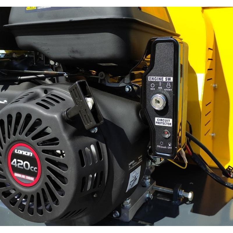 Der Häcksler MASTERCUT AU-DGS1500 wird von einem 12-PS-Benzinmotor angetrieben. Die Maschine ist zum Zerkleinern und Häckseln von Ästen und anderen organischen Materialien bestimmt. Sie kann Materialien mit einem Durchmesser von bis zu 12 cm verarbeiten.