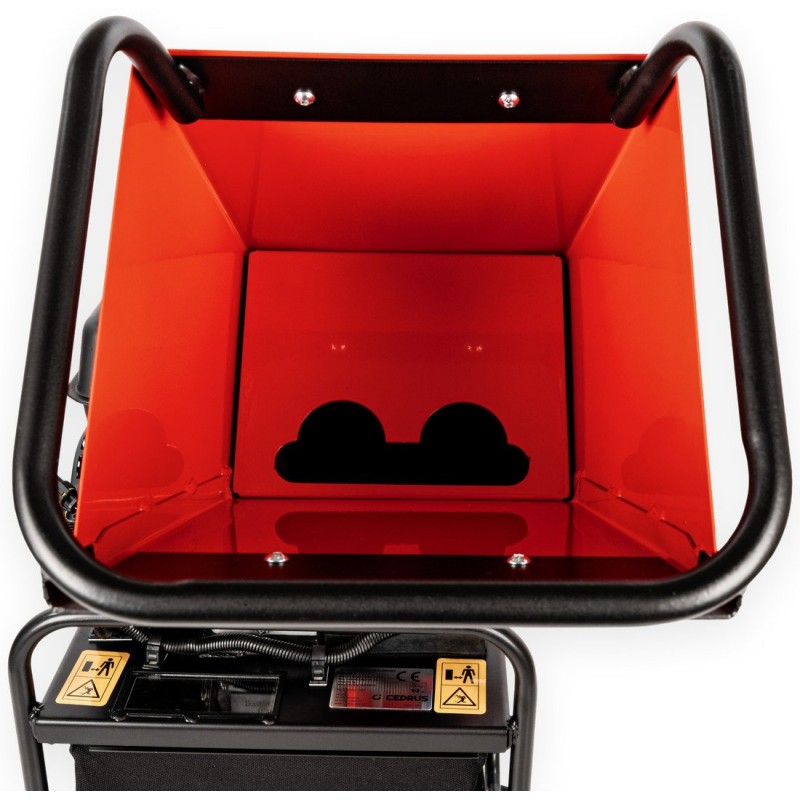 Der Häcksler Cedrus RB01C verfügt über einen Trommelschneidemechanismus mit einer 2+1-Messeranordnung, d. h. zwei Messer befinden sich auf der rotierenden Trommel, während das Gegenmesser im Maschinenkörper installiert ist. Der relativ breite Einfülltrichter ermöglicht das Zerkleinern von Ästen bis zu 5 cm Durchmesser. Der Holzhäcksler Cedrus RB01C wiegt 55 kg und lässt sich leicht auf dem Gelände bewegen, da er gut ausbalanciert ist und auf einem 2-Rad-Fahrgestell montiert ist.