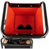 Das Gerät ist mit einem praktischen Einfülltrichter ausgestattet, der das Material präzise auf den Arbeitskopf dosiert, während die Hackschnitzel in einen robusten Behälter gelangen. Der aus strapazierfähigem Material gefertigte Hackschnitzelbehälter sorgt für Sauberkeit am Zerkleinerungsort.