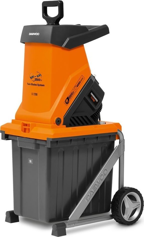 DAEWOO DSR 2700E Der elektrische Gartenhäcksler DAEWOO DSR 2700E dient zum Zerkleinern von Ästen und anderen Pflanzenabfällen. Zwei Stahlmesser zerkleinern Äste mit einem Durchmesser von bis zu 40 mm zu feinem Häckselgut, das als wertvoller Kompostrohstoff oder Mulch für Pflanzen verwendet werden kann.