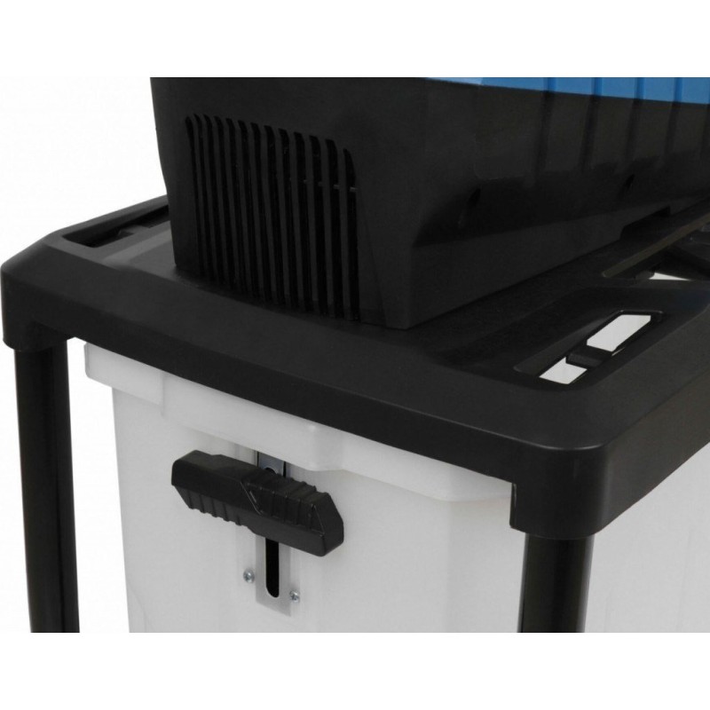 stabiler Sockel, ein 60-Liter-Behälter sowie Rollen für einen leichteren Transport, auch auf unebenem Untergrund, runden den Bedienkomfort ab.