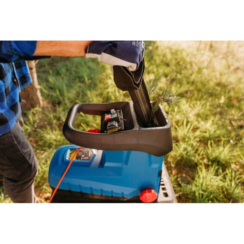Der Fräszer GS7010 der Marke BLAUPUNKT mit einer Leistung von 2600 W ist mit einem speziell entwickelten Messer ausgestattet, das die automatisch eingezogenen Äste mit einem maximalen Durchmesser von 45 mm an die Stelle zieht, an der sie zerkleinert werden. Diese Lösung sorgt für mehr Komfort und verkürzt die Arbeitszeit. Eine Drehzahl von 42 Umdrehungen pro Minute und ein hohes Drehmoment von 400 Nm garantieren eine effiziente Arbeit. Ein