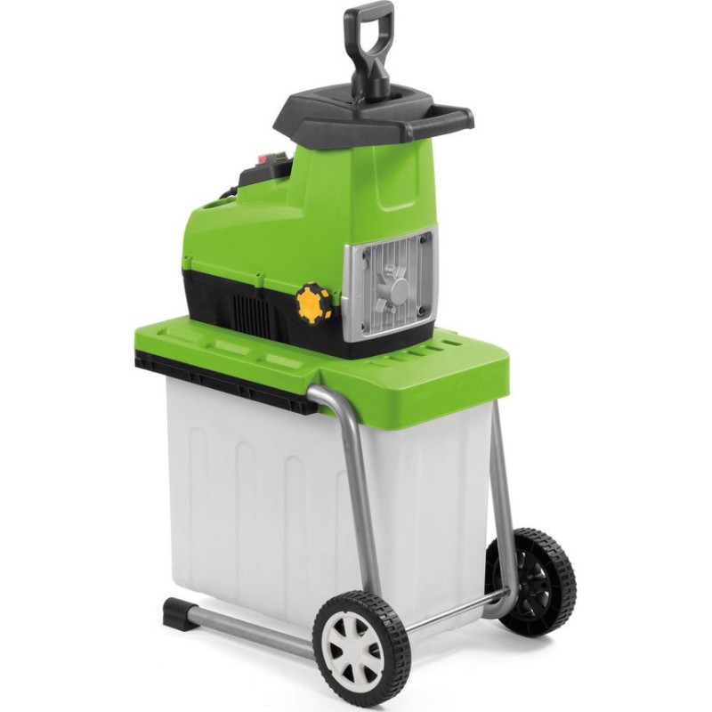 Der elektrische Häcksler mit einem 2.500-W-Motor ist mit einem Thermoschutz ausgestattet, der eine Überlastung und Beschädigung der Maschine verhindert. Ein fester Bestandteil ist der Kunststoffbehälter, der die Handhabung des gehäckselten Materials erheblich erleichtert. Dieses Modell ermöglicht das Zerkleinern von Ästen mit einem Durchmesser von bis zu 4 cm. Der Stahlrahmen erhöht die Stabilität während des Betriebs und verbessert somit die Sicherheit bei der Bedienung der Maschine. Im Lieferumfang ist ein Schieber enthalten, mit dem Materialreste sicher zu den Messern geschoben werden können.
