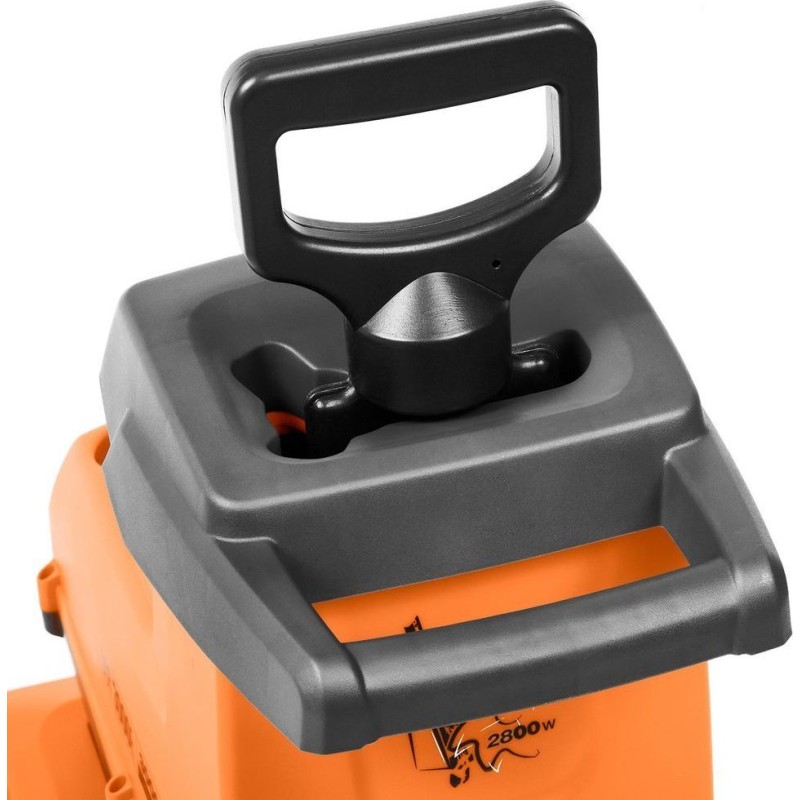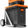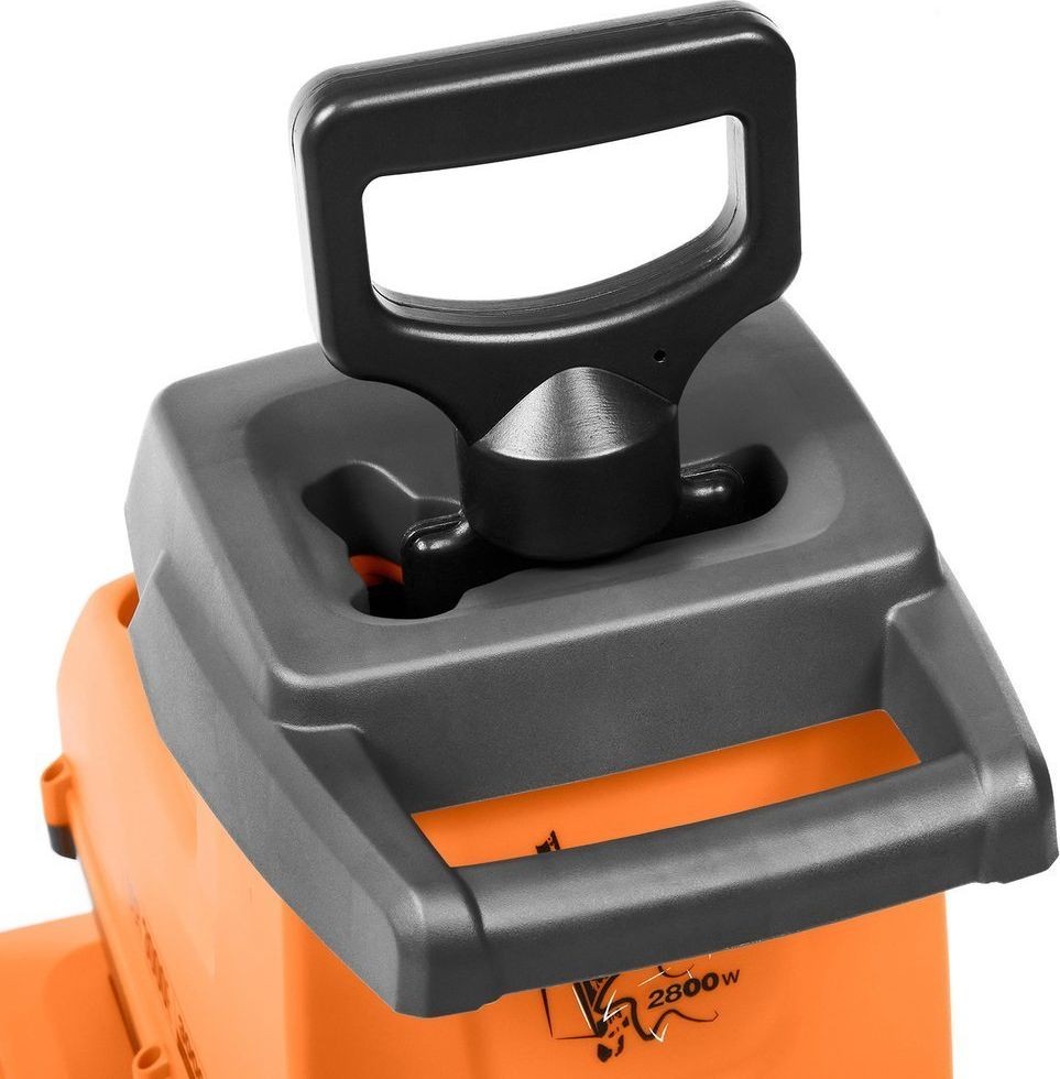 Einfach zu bedienen und zuverlässig im Betrieb. Der Rückwärtsgang hilft bei der Beseitigung von Verstopfungen. Der Überlastschutz schützt die Maschine vor Überhitzung und Beschädigung. Der aus robustem Kunststoff gefertigte, geräumige Behälter ermöglicht längeres Arbeiten, ohne dass häufige Pausen zum Entleeren erforderlich sind. Zieht Äste selbstständig ein, was für außergewöhnlichen Komfort und Arbeitssicherheit sorgt. Ein großer Vorteil der Zahnwalze ist auch der relativ leise Betrieb. Durch die einfache und schnelle Einstellung der Andruckplatte an der Zerkleinerungswalze lassen sich Hackschnitzel in der gewünschten Größe erzielen.