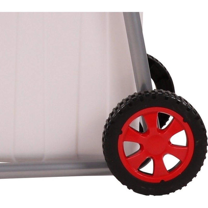 Der große, integrierte Behälter aus strapazierfähigem Kunststoff mit einem Fassungsvermögen von 55 Litern ist nicht nur verformungsbeständig, sondern eignet sich auch ideal für den Transport von zerkleinertem Material.