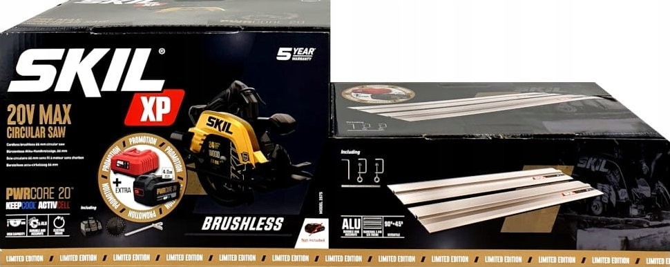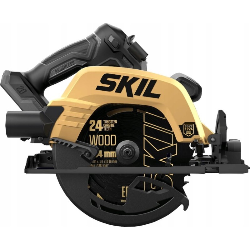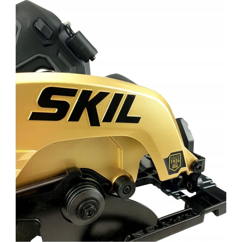 Die Akku-Kreissäge Skil 20V 3575 DB ist ein modernes Werkzeug, das dank des bürstenlosen Motors hohe Leistung und Effizienz vereint. Ihre maximale Schnitttiefe beträgt 66 mm bei einem Winkel von 90° und 46 mm bei einem Winkel von 45°, was sie zur idealen Wahl für vielfältige Arbeiten in Holz macht. Sie zeichnet sich durch eine limitierte Auflage in Goldfarbe aus, die an das 100-jährige Jubiläum der Firma Skil erinnert und ihr einen einzigartigen Charakter verleiht.