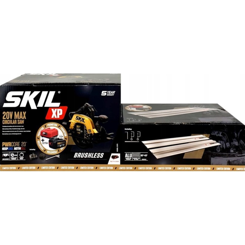 Im Lieferumfang enthalten sind ein Skil 20V 4,0Ah Li-Ion-Akku sowie eine Reihe von Zubehörteilen, darunter eine Parallelführung, ein Sechskantschlüssel, ein Staubsaugeradapter, zwei 70 cm lange Führungsschienen, ein Schienenverbinder, zwei Spannklemmen und eine Stofftasche. Damit ist die Säge sofort nach dem Kauf einsatzbereit.