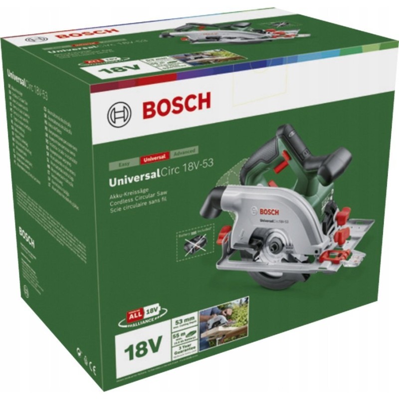 Entdecken Sie eine präzise, leistungsstarke und effiziente Säge. Das Modell UniversalCirc 18V-53 von Bosch ist eine hochwertige Kreissäge, die stets präzise Schnitte gewährleistet. Diese akkubetriebene Säge bietet die Freiheit des kabellosen Einsatzes und eignet sich ideal zum Schneiden verschiedener Holzwerkstoffe.