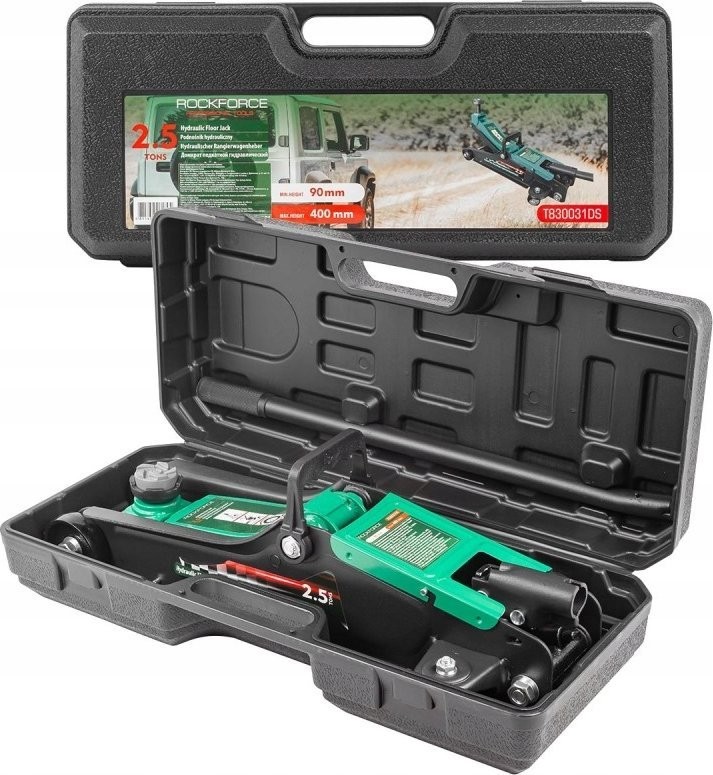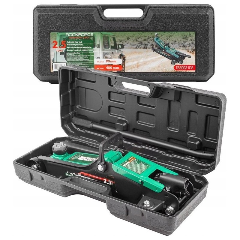Rockforce Hydraulischer Werkstattheber 2,5 t (min. Hubhöhe 90 mm, max. Hubhöhe 400 mm) im Koffer