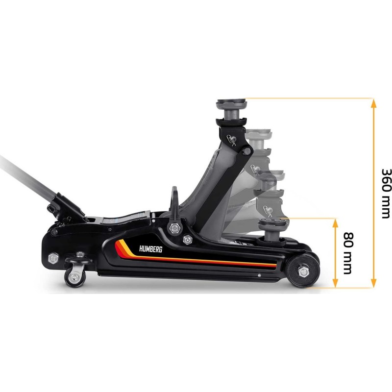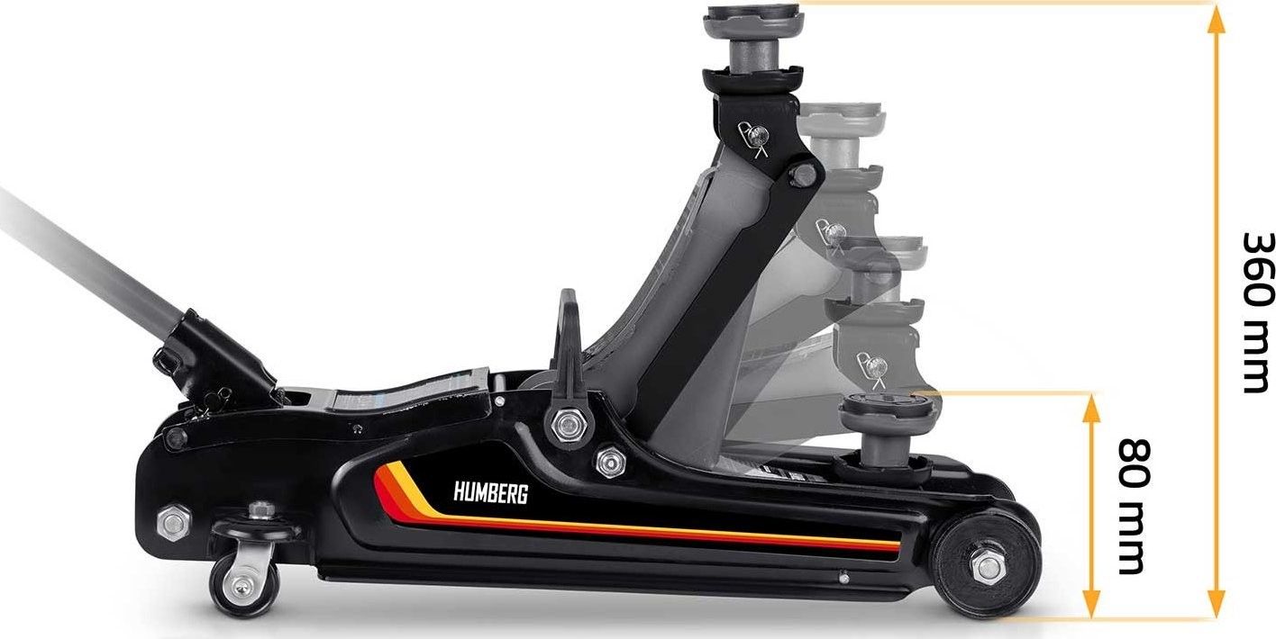✔ Hubhöhe 80–360 mm – hebt sogar niedrige Fahrzeuge an!
