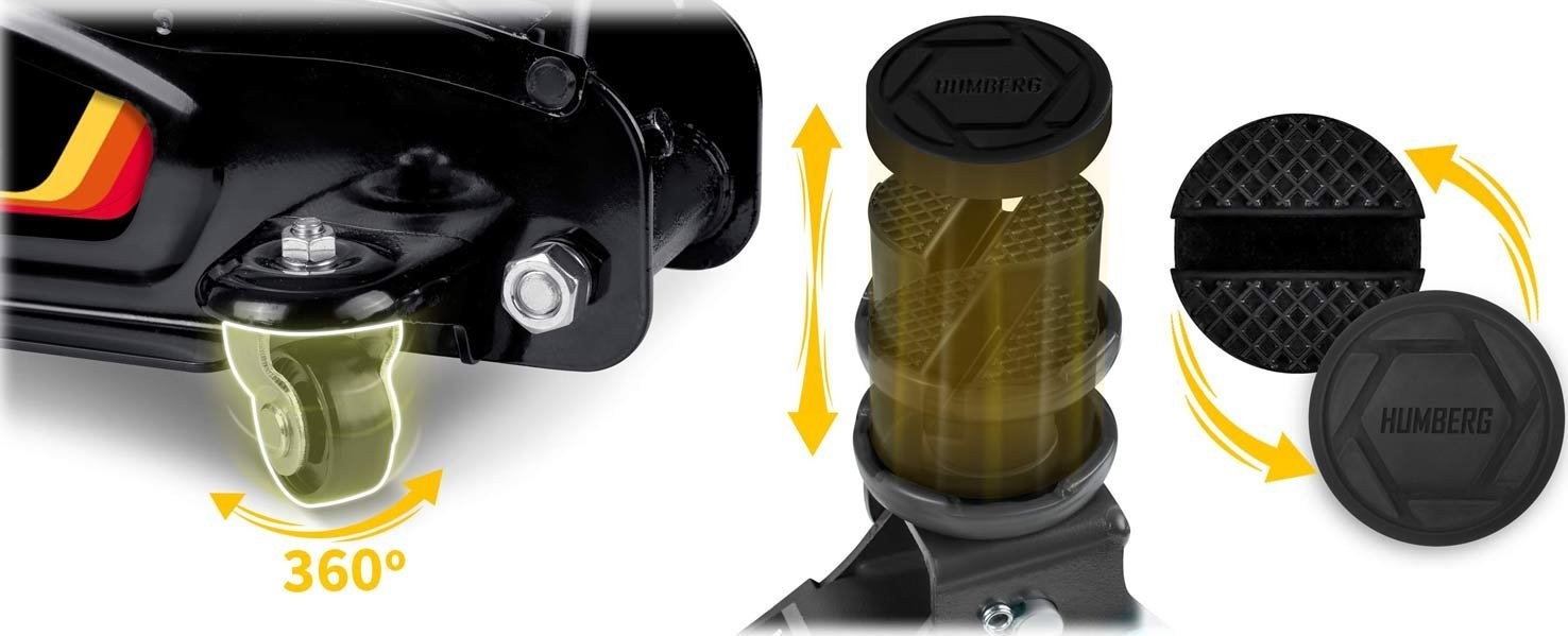 ✔ ZUSÄTZLICHER ERHÖHUNGSKOPF AUS STAHL — bessere Anpassung an Fahrzeuge mit höherer Schwelle.