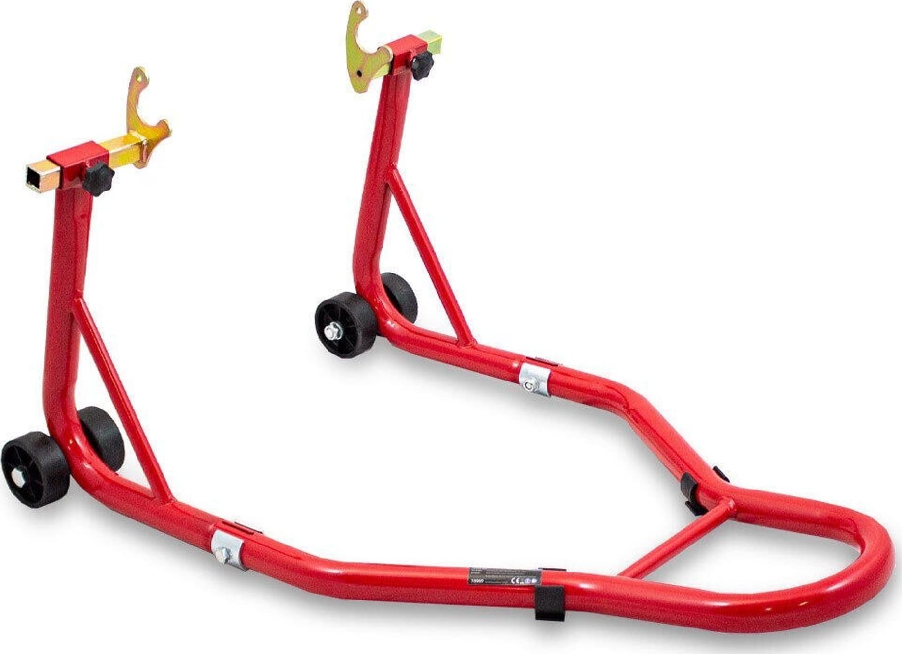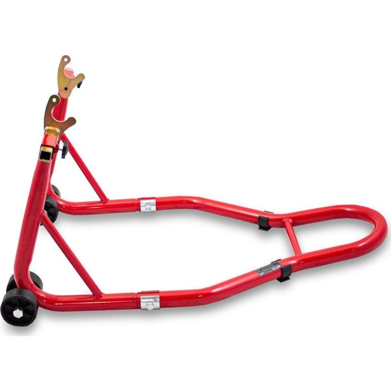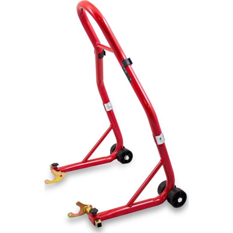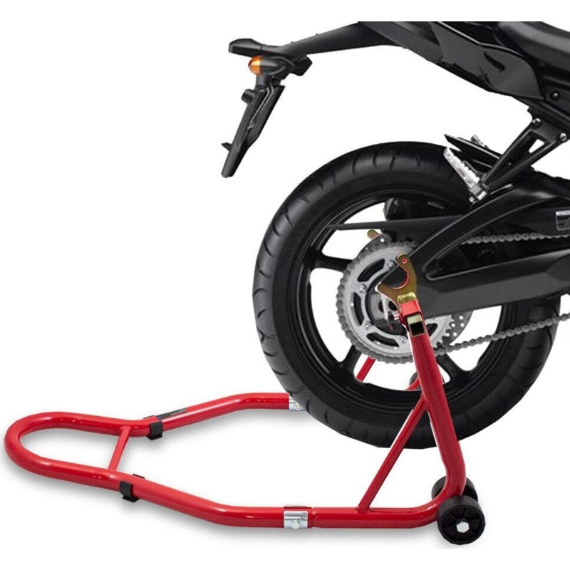 Ständer für das Hinterrad eines Motorrads. Geeignet für fast alle Motorradmodelle: DUCATI, SUZUKI, HONDA, KAWASAKI, YAMAHA, APRILIA, TRIUMPH, BMW, UVM. Ein nützlicher Ständer für jede Garage und Werkstatt. Dank ihm kannst du ganz einfach Reparaturen und Wartungsarbeiten durchführen, aber auch die Reifen leicht reinigen, schmieren, die Kette austauschen usw. Er eignet sich auch hervorragend zur Lagerung des Motorrads, da er weniger Platz beansprucht und die Reifen nicht belastet werden, sodass du das Risiko einer Verformung der Reifen vergessen kannst. Die große Auflagefläche sorgt für Stabilität, und die Gummigriffe schützen das Motorrad vor Kratzern. Die Halterung ist im Bereich von 210 bis 340 mm verstellbar.
