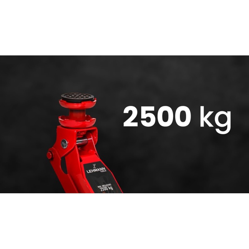 Der Wagenheber kann mit Fahrzeugen mit einem Gewicht von bis zu 2500 kg arbeiten, d. h. er bewältigt die meisten PKWs;