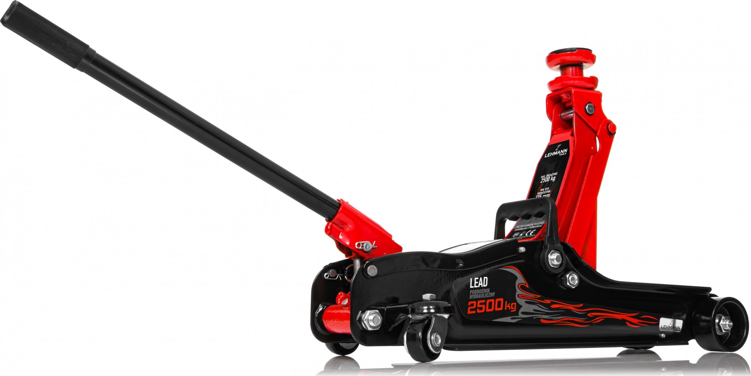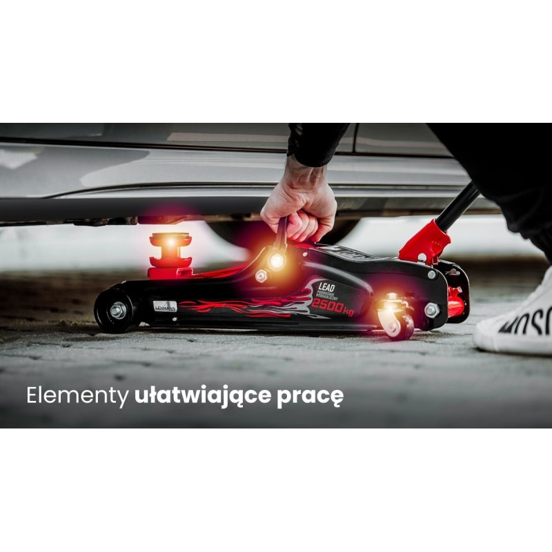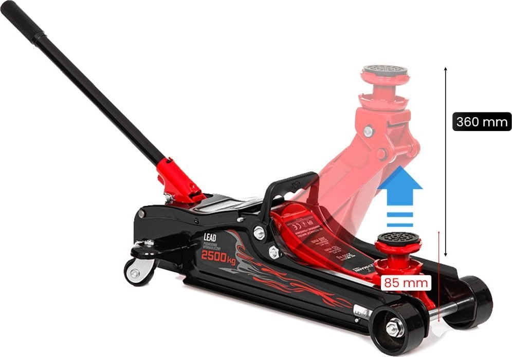 Der professionell gefertigte Wagenheber verfügt über eine leistungsstarke Pumpe, dank der er problemlos Fahrzeuge und Gegenstände mit einem Gewicht von bis zu 2500 kg anheben kann. Das Gerät ist für jeden Autofahrer nicht nur in Notfällen, sondern auch für eigenständige Arbeiten am Fahrzeug, wie zum Beispiel