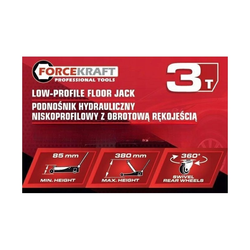 Forcekraft Hydraulikheber, flache Froschausführung, 3 t, mit drehbarem Griff